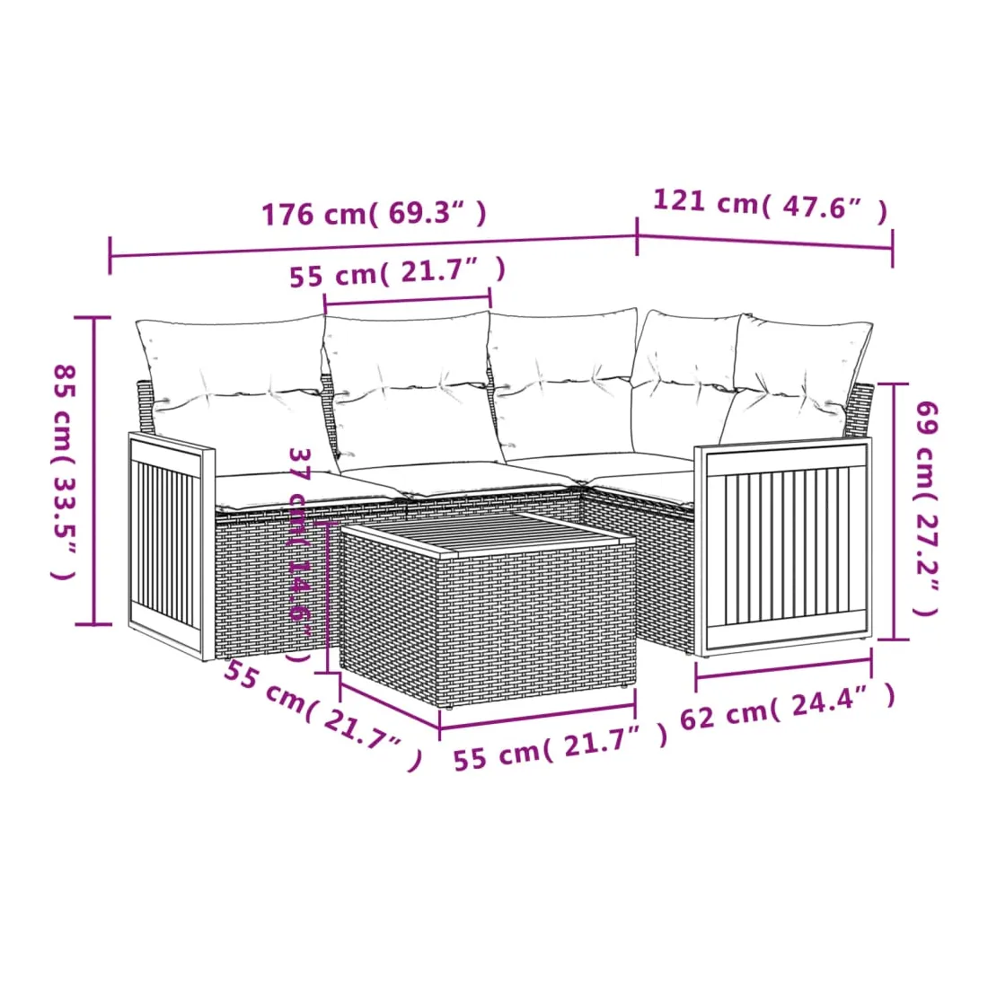 Cet ensemble de canapés de jardin est le complément parfait de votre arrière-cour, terrasse ou patio, offrant un espace confortable et accueillant pour discuter avec la famille et les amis ou simplement se détendre et profiter de l'extérieur. Matériau durable : la résine tressée, également connue sous le nom de poly rotin, est un matériau synthétique solide et nécessitant peu d'entretien qui ressemble au rotin naturel. Il est léger, facile à nettoyer et couramment utilisé pour les meubles d'extérieur en raison de sa durabilité et de ses propriétés de résistance aux intempéries.Expérience d'assise confortable : ce mobilier d'extérieur, doté de coussins épais, offre une expérience d'assise confortable.Dessus stable et facile à nettoyer : cette table de jardin a un dessus en bois d'acacia robuste, durable et facile à nettoyer avec un chiffon humide.Housse amovible et lavable : ces coussins de siège sont dotés de housses amovibles pour un lavage et un entretien faciles.Conception modulaire : cet ensemble de meubles d'extérieur a une conception modulaire, ce qui le rend complètement flexible et facile à déplacer, afin que vous puissiez créer un agencement de meubles d'extérieur personnalisé. Bon à savoir :Pour que vos meubles d'extérieur restent beaux, nous vous recommandons de les protéger avec une housse imperméable.