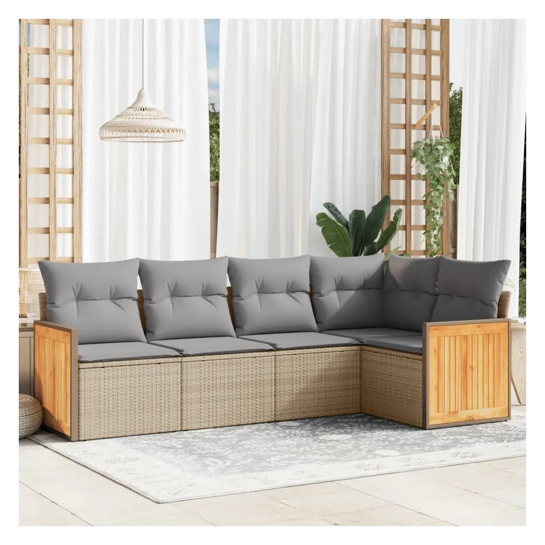 Cet ensemble de canapés de jardin est le complément parfait de votre arrière-cour, terrasse ou patio, offrant un espace confortable et accueillant pour discuter avec la famille et les amis ou simplement se détendre et profiter de l'extérieur. Matériau durable : la résine tressée, également connue sous le nom de poly rotin, est un matériau synthétique solide et nécessitant peu d'entretien qui ressemble au rotin naturel. Il est léger, facile à nettoyer et couramment utilisé pour les meubles d'extérieur en raison de sa durabilité et de ses propriétés de résistance aux intempéries.Expérience d'assise confortable : ce mobilier d'extérieur, doté de coussins épais, offre une expérience d'assise confortable.Housse amovible et lavable : ces coussins de siège sont dotés de housses amovibles pour un lavage et un entretien faciles.Conception modulaire : cet ensemble de meubles d'extérieur a une conception modulaire, ce qui le rend complètement flexible et facile à déplacer, afin que vous puissiez créer un agencement de meubles d'extérieur personnalisé. Bon à savoir :Pour que vos meubles d'extérieur restent beaux, nous vous recommandons de les protéger avec une housse imperméable.