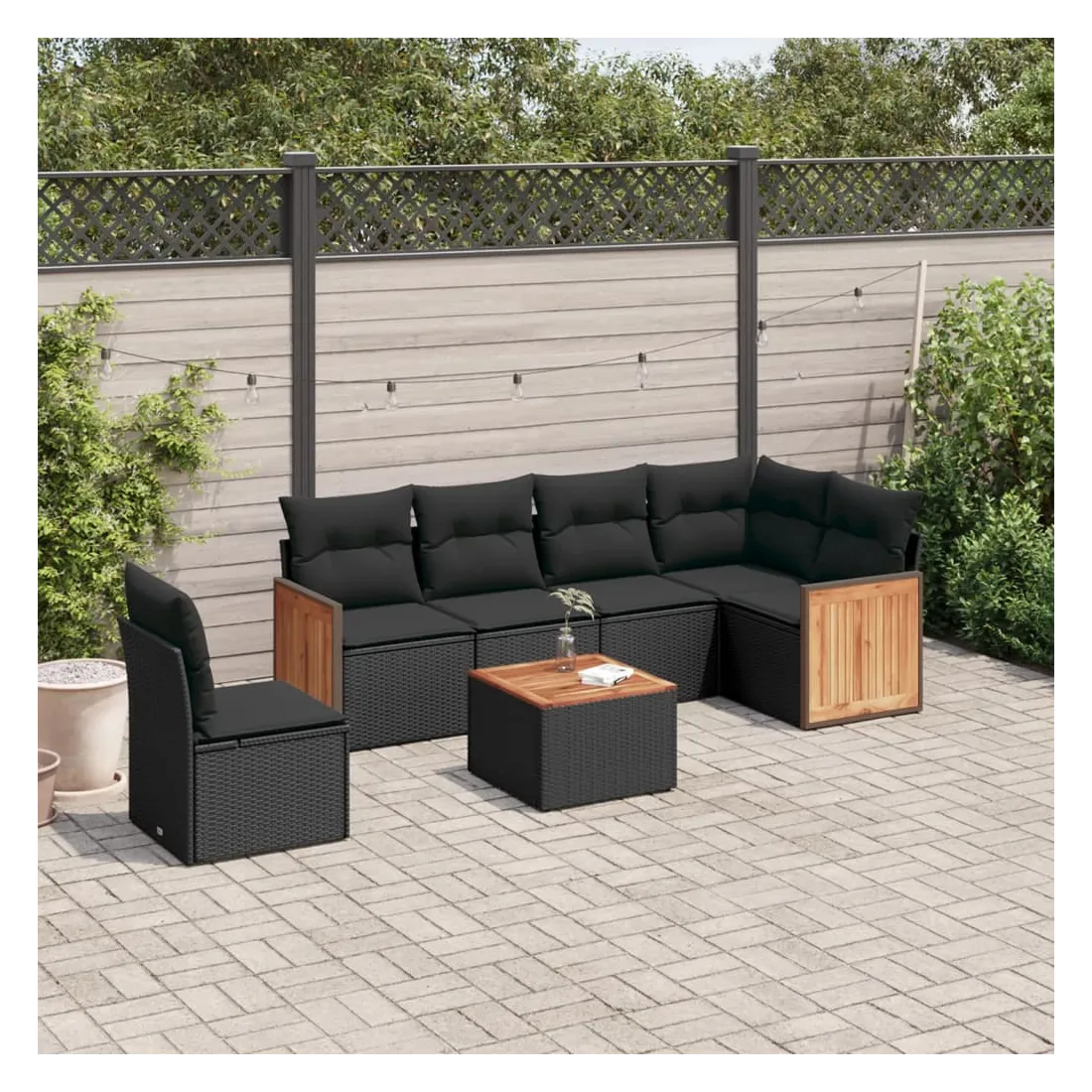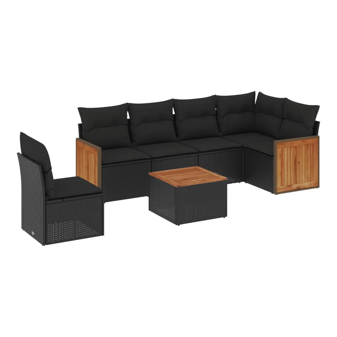 Salon de jardin 7 pcs avec coussins noir résine tressée