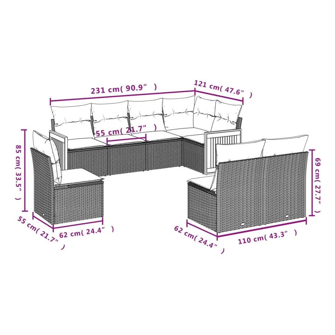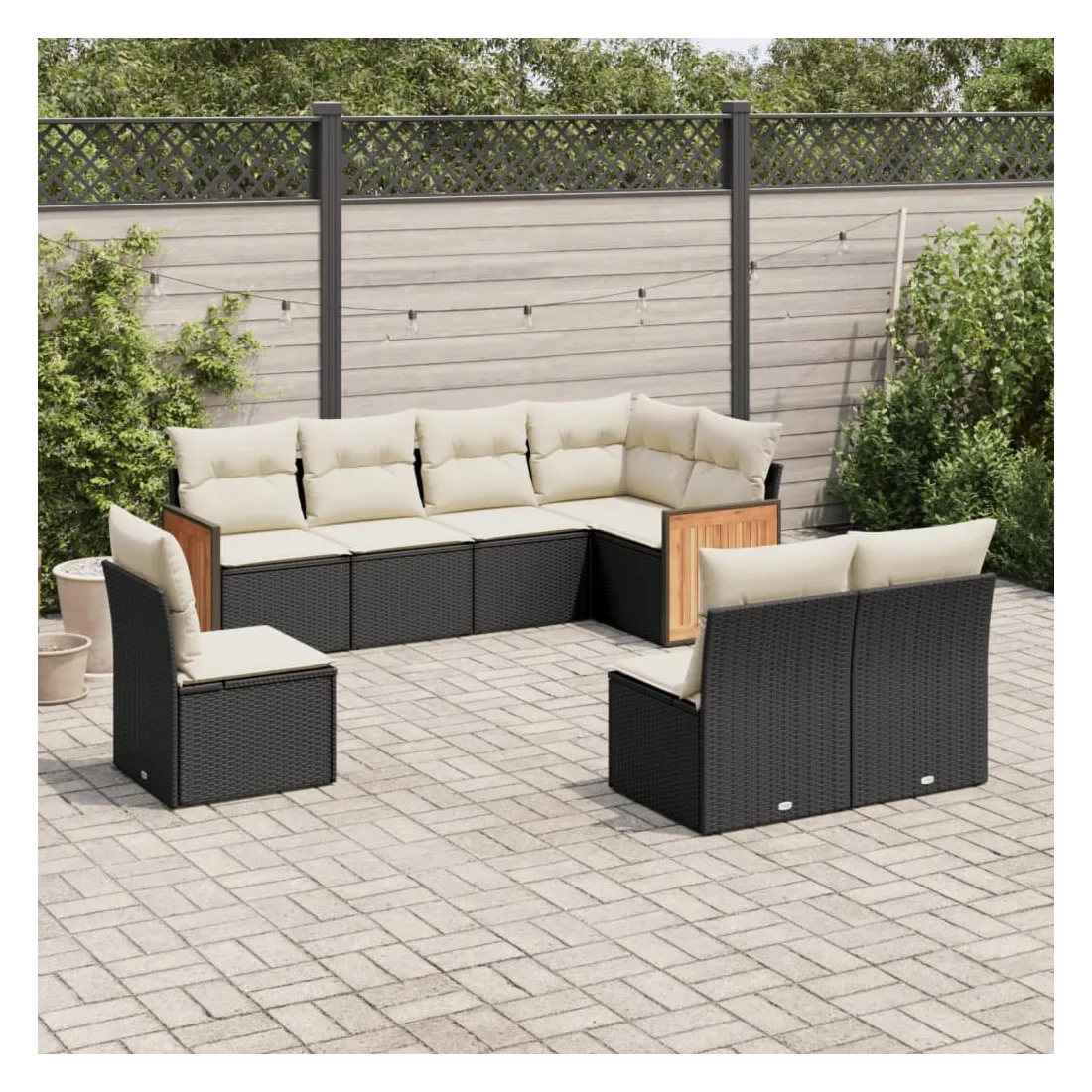 Cet ensemble de canapés de jardin est le complément parfait de votre arrière-cour, terrasse ou patio, offrant un espace confortable et accueillant pour discuter avec la famille et les amis ou simplement se détendre et profiter de l'extérieur. Matériau durable : la résine tressée, également connue sous le nom de poly rotin, est un matériau synthétique solide et nécessitant peu d'entretien qui ressemble au rotin naturel. Il est léger, facile à nettoyer et couramment utilisé pour les meubles d'extérieur en raison de sa durabilité et de ses propriétés de résistance aux intempéries.Expérience d'assise confortable : ce mobilier d'extérieur, doté de coussins épais, offre une expérience d'assise confortable.Housse amovible et lavable : ces coussins de siège sont dotés de housses amovibles pour un lavage et un entretien faciles.Conception modulaire : cet ensemble de meubles d'extérieur a une conception modulaire, ce qui le rend complètement flexible et facile à déplacer, afin que vous puissiez créer un agencement de meubles d'extérieur personnalisé. Bon à savoir :Pour que vos meubles d'extérieur restent beaux, nous vous recommandons de les protéger avec une housse imperméable.