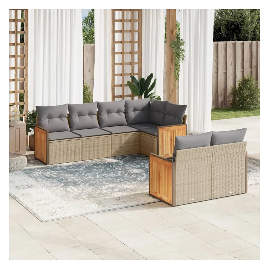 Cet ensemble de canapés de jardin est le complément parfait de votre arrière-cour, terrasse ou patio, offrant un espace confortable et accueillant pour discuter avec la famille et les amis ou simplement se détendre et profiter de l'extérieur. Matériau durable : la résine tressée, également connue sous le nom de poly rotin, est un matériau synthétique solide et nécessitant peu d'entretien qui ressemble au rotin naturel. Il est léger, facile à nettoyer et couramment utilisé pour les meubles d'extérieur en raison de sa durabilité et de ses propriétés de résistance aux intempéries.Expérience d'assise confortable : ce mobilier d'extérieur, doté de coussins épais, offre une expérience d'assise confortable.Housse amovible et lavable : ces coussins de siège sont dotés de housses amovibles pour un lavage et un entretien faciles.Conception modulaire : cet ensemble de meubles d'extérieur a une conception modulaire, ce qui le rend complètement flexible et facile à déplacer, afin que vous puissiez créer un agencement de meubles d'extérieur personnalisé. Bon à savoir :Pour que vos meubles d'extérieur restent beaux, nous vous recommandons de les protéger avec une housse imperméable.