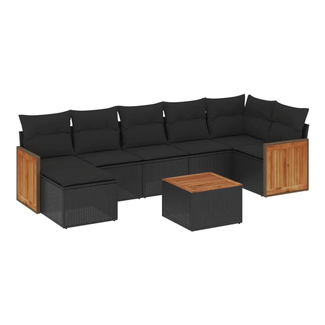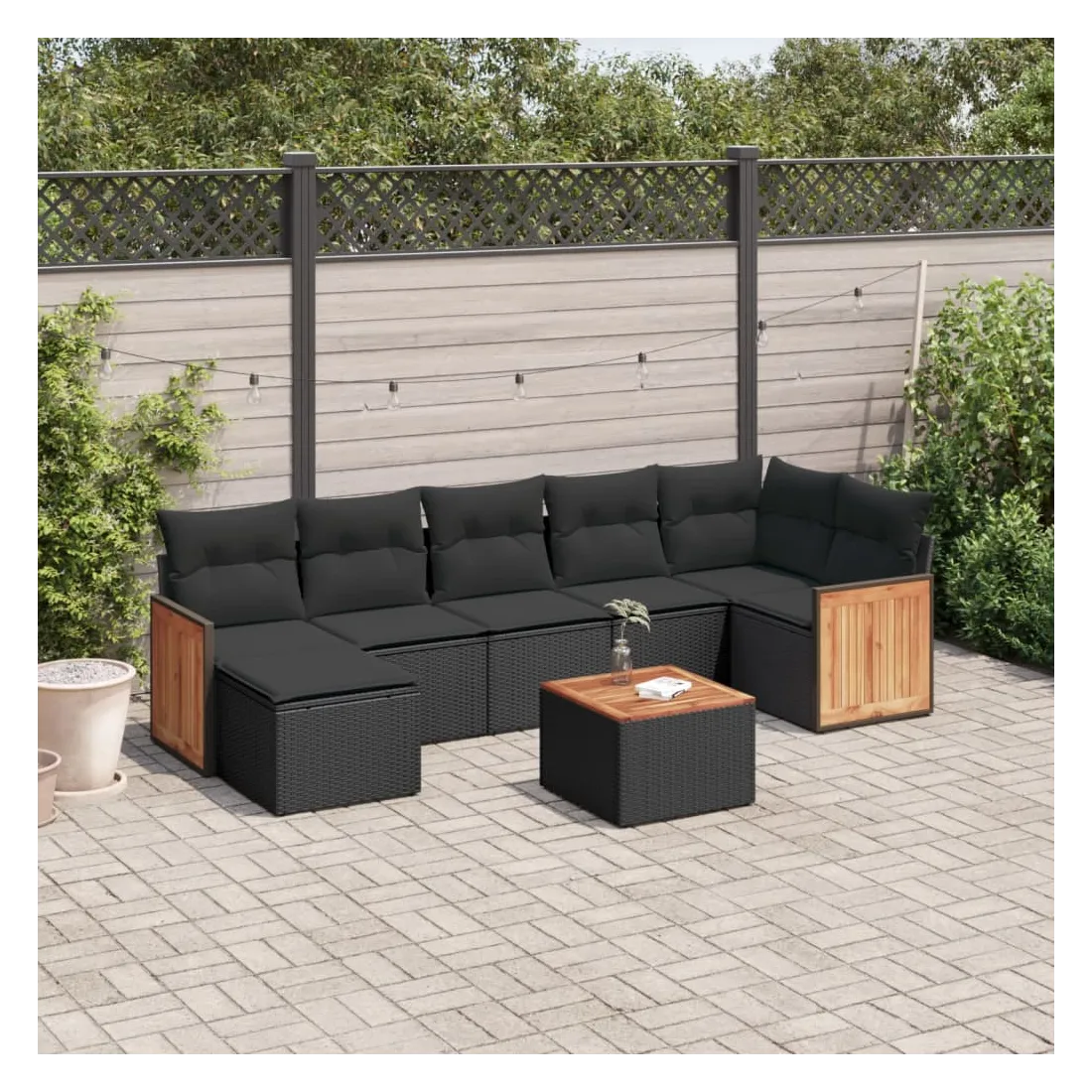 Salon de jardin 8 pcs avec coussins noir résine tressée