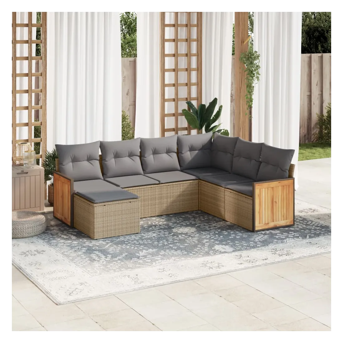 Salon de jardin avec coussins 7 pcs beige résine tressée