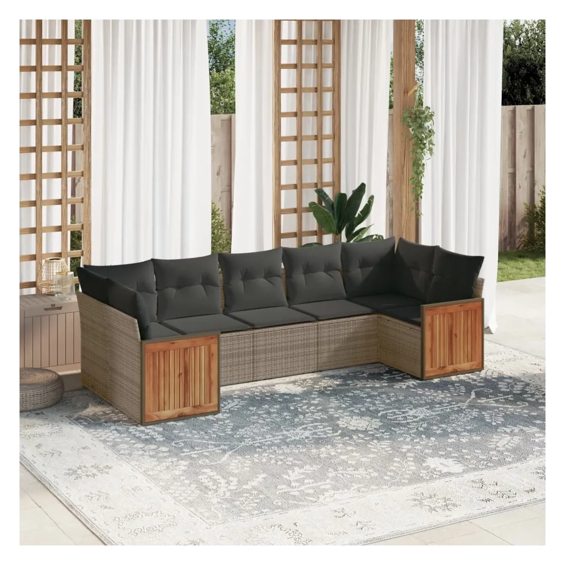 Cet ensemble de canapés de jardin est le complément parfait de votre arrière-cour, terrasse ou patio, offrant un espace confortable et accueillant pour discuter avec la famille et les amis ou simplement se détendre et profiter de l'extérieur. Matériau durable : la résine tressée, également connue sous le nom de poly rotin, est un matériau synthétique solide et nécessitant peu d'entretien qui ressemble au rotin naturel. Il est léger, facile à nettoyer et couramment utilisé pour les meubles d'extérieur en raison de sa durabilité et de ses propriétés de résistance aux intempéries.Expérience d'assise confortable : ce mobilier d'extérieur, doté de coussins épais, offre une expérience d'assise confortable.Dessus stable et facile à nettoyer : cette table de jardin a un dessus en bois d'acacia robuste, durable et facile à nettoyer avec un chiffon humide.Housse amovible et lavable : ces coussins de siège sont dotés de housses amovibles pour un lavage et un entretien faciles.Conception modulaire : cet ensemble de meubles d'extérieur a une conception modulaire, ce qui le rend complètement flexible et facile à déplacer, afin que vous puissiez créer un agencement de meubles d'extérieur personnalisé. Bon à savoir :Pour que vos meubles d'extérieur restent beaux, nous vous recommandons de les protéger avec une housse imperméable.