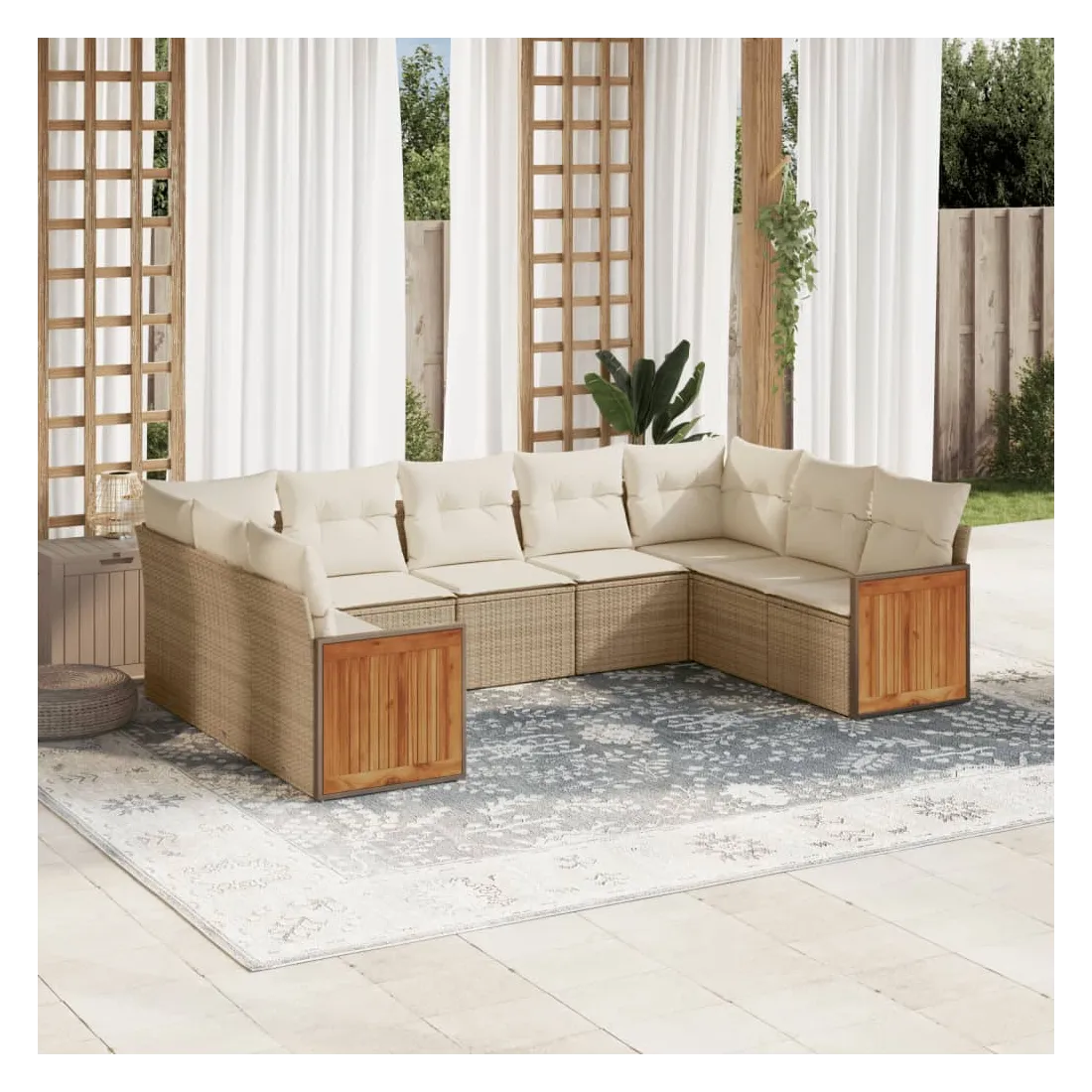 Salon de jardin avec coussins 9 pcs beige résine tressée