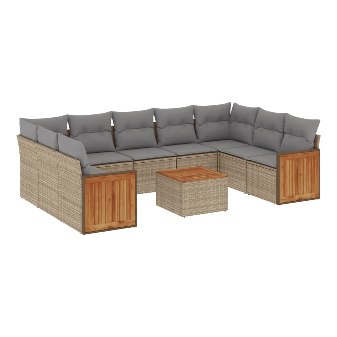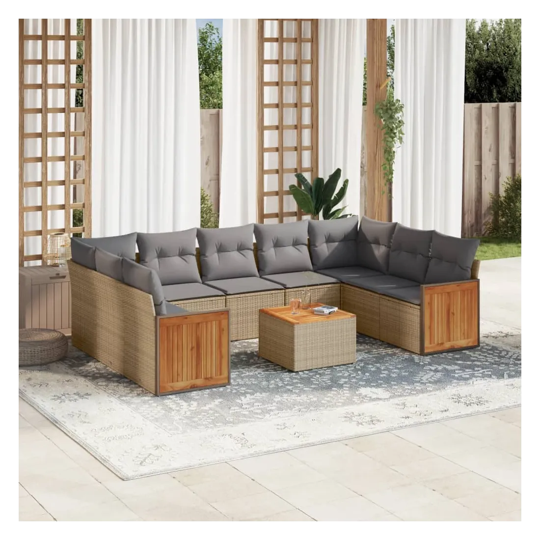 Salon de jardin avec coussins 10 pcs beige résine tressée