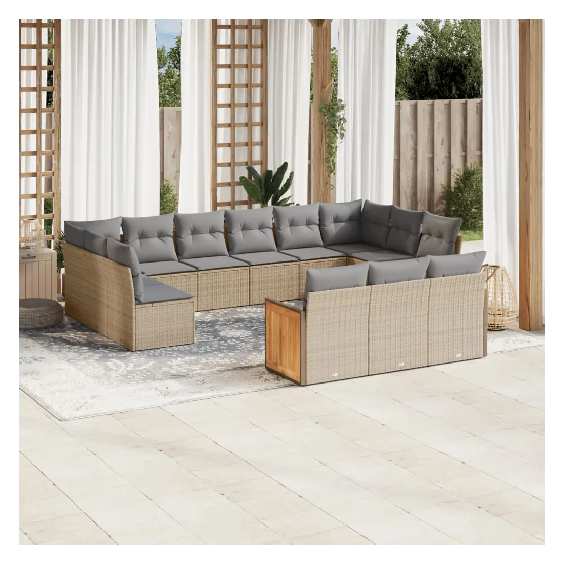 Cet ensemble de canapés de jardin est le complément parfait de votre arrière-cour, terrasse ou patio, offrant un espace confortable et accueillant pour discuter avec la famille et les amis ou simplement se détendre et profiter de l'extérieur. Matériau durable : la résine tressée, également connue sous le nom de poly rotin, est un matériau synthétique solide et nécessitant peu d'entretien qui ressemble au rotin naturel. Il est léger, facile à nettoyer et couramment utilisé pour les meubles d'extérieur en raison de sa durabilité et de ses propriétés de résistance aux intempéries.Expérience d'assise confortable : ce mobilier d'extérieur, doté de coussins épais, offre une expérience d'assise confortable.Housse amovible et lavable : ces coussins de siège sont dotés de housses amovibles pour un lavage et un entretien faciles.Conception modulaire : cet ensemble de meubles d'extérieur a une conception modulaire, ce qui le rend complètement flexible et facile à déplacer, afin que vous puissiez créer un agencement de meubles d'extérieur personnalisé. Bon à savoir :Pour que vos meubles d'extérieur restent beaux, nous vous recommandons de les protéger avec une housse imperméable.