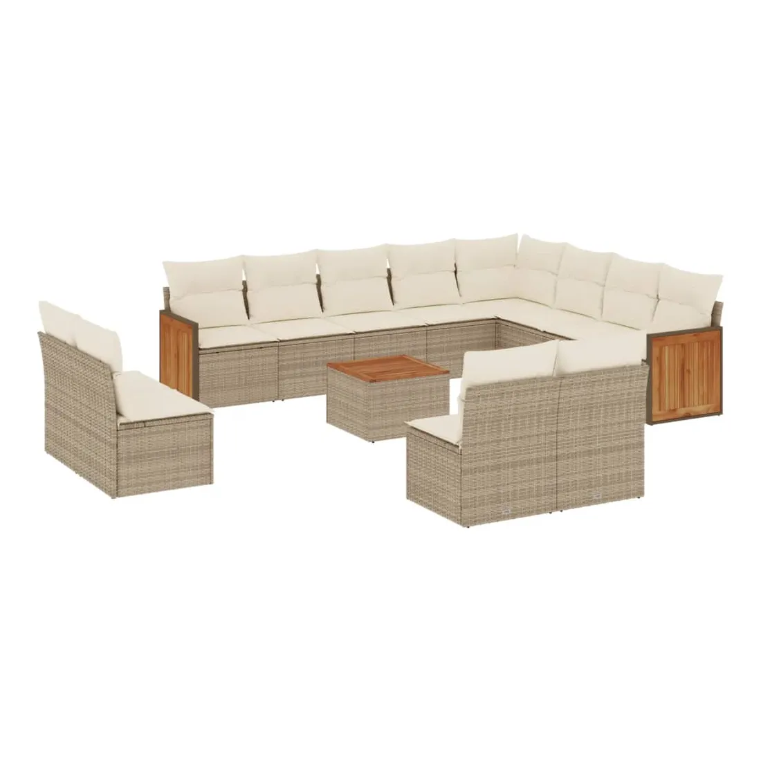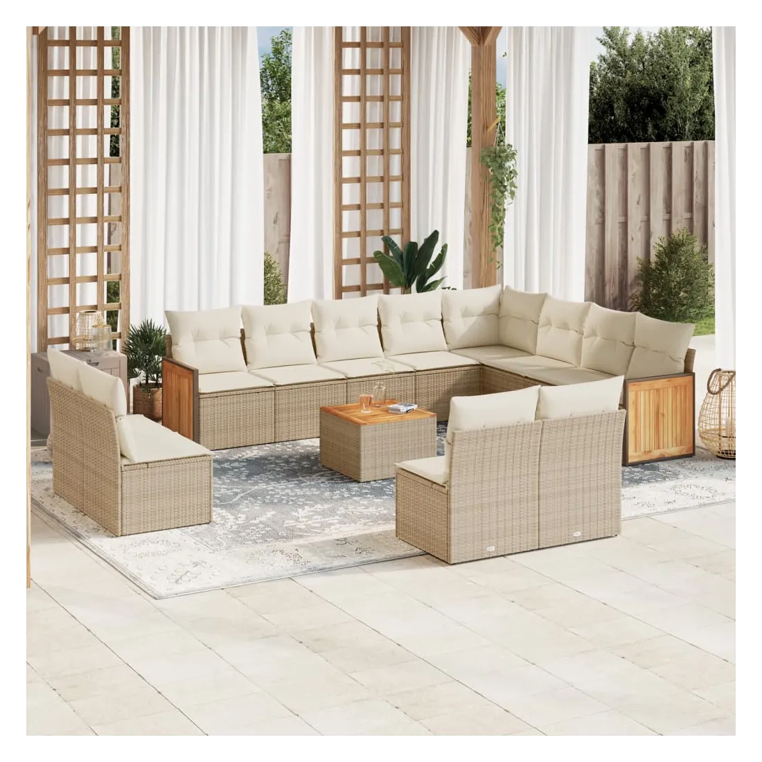 Cet ensemble de canapés de jardin est le complément parfait de votre arrière-cour, terrasse ou patio, offrant un espace confortable et accueillant pour discuter avec la famille et les amis ou simplement se détendre et profiter de l'extérieur. Matériau durable : la résine tressée, également connue sous le nom de poly rotin, est un matériau synthétique solide et nécessitant peu d'entretien qui ressemble au rotin naturel. Il est léger, facile à nettoyer et couramment utilisé pour les meubles d'extérieur en raison de sa durabilité et de ses propriétés de résistance aux intempéries.Expérience d'assise confortable : ce mobilier d'extérieur, doté de coussins épais, offre une expérience d'assise confortable.Dessus stable et facile à nettoyer : cette table de jardin a un dessus en bois d'acacia robuste, durable et facile à nettoyer avec un chiffon humide.Housse amovible et lavable : ces coussins de siège sont dotés de housses amovibles pour un lavage et un entretien faciles.Conception modulaire : cet ensemble de meubles d'extérieur a une conception modulaire, ce qui le rend complètement flexible et facile à déplacer, afin que vous puissiez créer un agencement de meubles d'extérieur personnalisé. Bon à savoir :Pour que vos meubles d'extérieur restent beaux, nous vous recommandons de les protéger avec une housse imperméable.