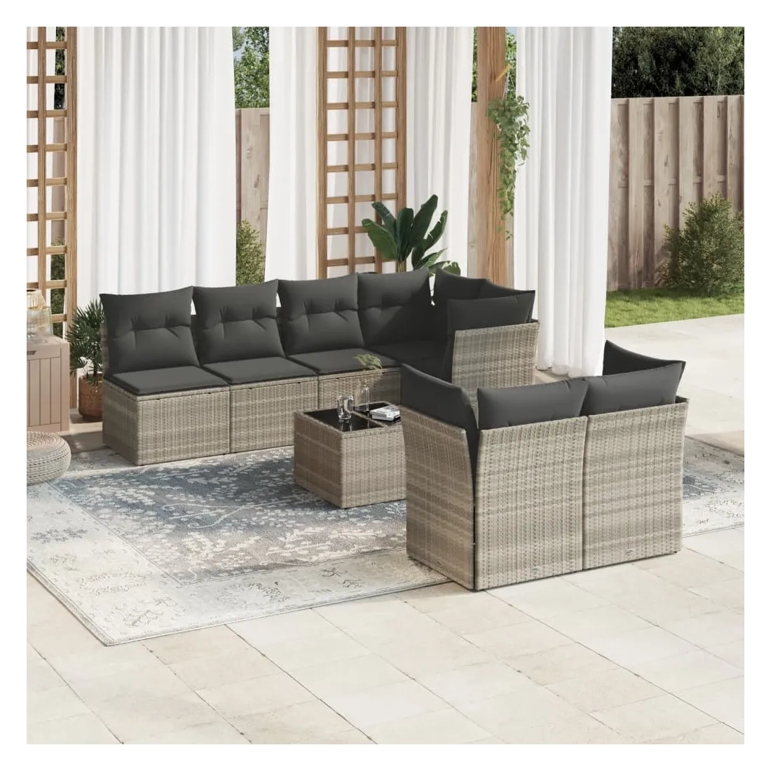 Cet ensemble de canapés de jardin est le complément parfait de votre arrière-cour, terrasse ou patio, offrant un espace confortable et accueillant pour discuter avec la famille et les amis ou simplement se détendre et profiter de l'extérieur. Matériau durable : la résine tressée, également connue sous le nom de poly rotin, est un matériau synthétique solide et nécessitant peu d'entretien qui ressemble au rotin naturel. Il est léger, facile à nettoyer et couramment utilisé pour les meubles d'extérieur en raison de sa durabilité et de ses propriétés de résistance aux intempéries.Fonction de rangement avec sac résistant à l'eau : chaque siège de jardin dispose d'un espace de rangement sous l'assise, complété par un sac résistant à l'eau pour ranger les coussins, les jouets et d'autres objets. Les sacs intérieurs sont dotés d'un couvercle et peuvent être solidement fixés aux sièges à l'aide de bandes auto-agrippantes pour plus de stabilité.Dessus en verre : le dessus de la table d'extérieur est fabriqué en verre trempé solide et durable, ce qui le rend facile à nettoyer avec un chiffon humide et ajoute une touche d'élégance à votre espace extérieur.Housse amovible et lavable : ces coussins de siège sont dotés de housses amovibles pour un lavage et un entretien faciles.Conception modulaire : cet ensemble de meubles d'extérieur a une conception modulaire, ce qui le rend complètement flexible et facile à déplacer, afin que vous puissiez créer un agencement de meubles d'extérieur personnalisé. Bon à savoir :Pour que vos meubles d'extérieur restent beaux, nous vous recommandons de les protéger avec une housse imperméable.