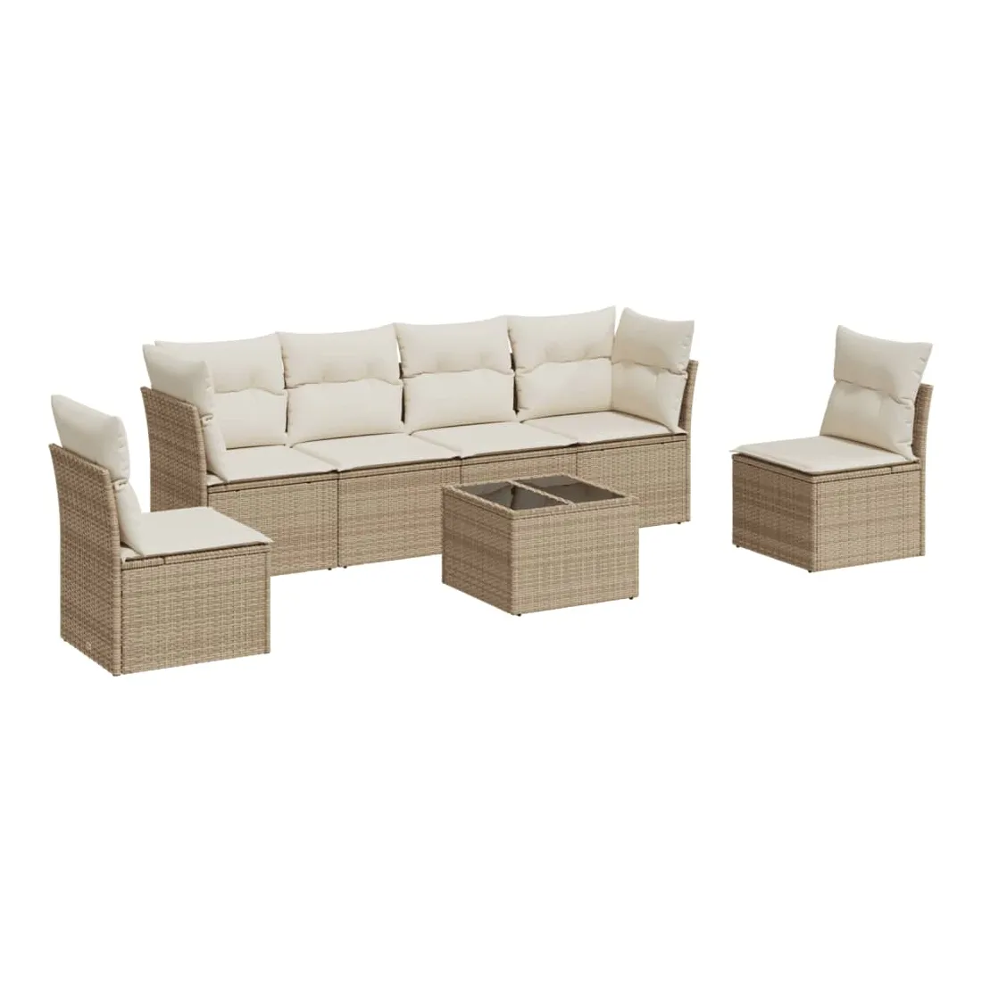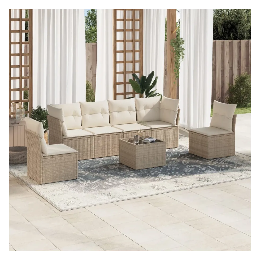 Cet ensemble de canapés de jardin est le complément parfait de votre arrière-cour, terrasse ou patio, offrant un espace confortable et accueillant pour discuter avec la famille et les amis ou simplement se détendre et profiter de l'extérieur. Matériau durable : la résine tressée, également connue sous le nom de poly rotin, est un matériau synthétique solide et nécessitant peu d'entretien qui ressemble au rotin naturel. Il est léger, facile à nettoyer et couramment utilisé pour les meubles d'extérieur en raison de sa durabilité et de ses propriétés de résistance aux intempéries.Fonction de rangement avec sac résistant à l'eau : chaque siège de jardin dispose d'un espace de rangement sous l'assise, complété par un sac résistant à l'eau pour ranger les coussins, les jouets et d'autres objets. Les sacs intérieurs sont dotés d'un couvercle et peuvent être solidement fixés aux sièges à l'aide de bandes auto-agrippantes pour plus de stabilité.Dessus en verre : le dessus de la table d'extérieur est fabriqué en verre trempé solide et durable, ce qui le rend facile à nettoyer avec un chiffon humide et ajoute une touche d'élégance à votre espace extérieur.Housse amovible et lavable : ces coussins de siège sont dotés de housses amovibles pour un lavage et un entretien faciles.Conception modulaire : cet ensemble de meubles d'extérieur a une conception modulaire, ce qui le rend complètement flexible et facile à déplacer, afin que vous puissiez créer un agencement de meubles d'extérieur personnalisé. Bon à savoir :Pour que vos meubles d'extérieur restent beaux, nous vous recommandons de les protéger avec une housse imperméable.