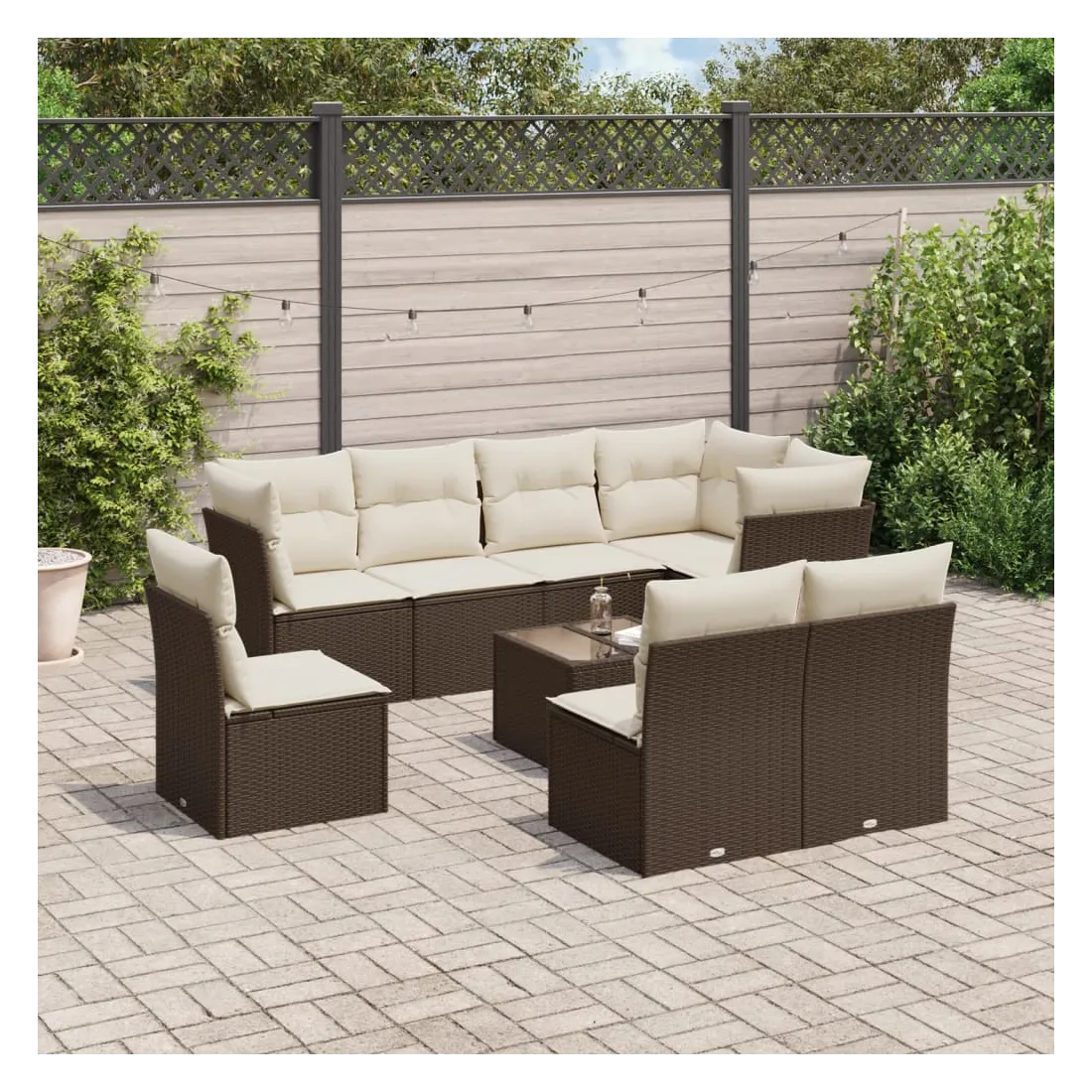 Cet ensemble de canapés de jardin est le complément parfait de votre arrière-cour, terrasse ou patio, offrant un espace confortable et accueillant pour discuter avec la famille et les amis ou simplement se détendre et profiter de l'extérieur. Matériau durable : la résine tressée, également connue sous le nom de poly rotin, est un matériau synthétique solide et nécessitant peu d'entretien qui ressemble au rotin naturel. Il est léger, facile à nettoyer et couramment utilisé pour les meubles d'extérieur en raison de sa durabilité et de ses propriétés de résistance aux intempéries.Fonction de rangement avec sac résistant à l'eau : chaque siège de jardin dispose d'un espace de rangement sous l'assise, complété par un sac résistant à l'eau pour ranger les coussins, les jouets et d'autres objets. Les sacs intérieurs sont dotés d'un couvercle et peuvent être solidement fixés aux sièges à l'aide de bandes auto-agrippantes pour plus de stabilité.Dessus en verre : le dessus de la table d'extérieur est fabriqué en verre trempé solide et durable, ce qui le rend facile à nettoyer avec un chiffon humide et ajoute une touche d'élégance à votre espace extérieur.Housse amovible et lavable : ces coussins de siège sont dotés de housses amovibles pour un lavage et un entretien faciles.Conception modulaire : cet ensemble de meubles d'extérieur a une conception modulaire, ce qui le rend complètement flexible et facile à déplacer, afin que vous puissiez créer un agencement de meubles d'extérieur personnalisé. Bon à savoir :Pour que vos meubles d'extérieur restent beaux, nous vous recommandons de les protéger avec une housse imperméable.