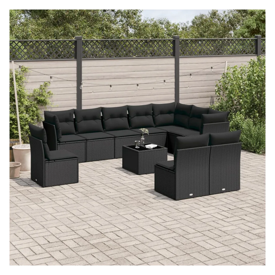 Cet ensemble de canapés de jardin est le complément parfait de votre arrière-cour, terrasse ou patio, offrant un espace confortable et accueillant pour discuter avec la famille et les amis ou simplement se détendre et profiter de l'extérieur. Matériau durable : la résine tressée, également connue sous le nom de poly rotin, est un matériau synthétique solide et nécessitant peu d'entretien qui ressemble au rotin naturel. Il est léger, facile à nettoyer et couramment utilisé pour les meubles d'extérieur en raison de sa durabilité et de ses propriétés de résistance aux intempéries.Fonction de rangement avec sac résistant à l'eau : chaque siège de jardin dispose d'un espace de rangement sous l'assise, complété par un sac résistant à l'eau pour ranger les coussins, les jouets et d'autres objets. Les sacs intérieurs sont dotés d'un couvercle et peuvent être solidement fixés aux sièges à l'aide de bandes auto-agrippantes pour plus de stabilité.Dessus en verre : le dessus de la table d'extérieur est fabriqué en verre trempé solide et durable, ce qui le rend facile à nettoyer avec un chiffon humide et ajoute une touche d'élégance à votre espace extérieur.Housse amovible et lavable : ces coussins de siège sont dotés de housses amovibles pour un lavage et un entretien faciles.Conception modulaire : cet ensemble de meubles d'extérieur a une conception modulaire, ce qui le rend complètement flexible et facile à déplacer, afin que vous puissiez créer un agencement de meubles d'extérieur personnalisé. Bon à savoir :Pour que vos meubles d'extérieur restent beaux, nous vous recommandons de les protéger avec une housse imperméable.