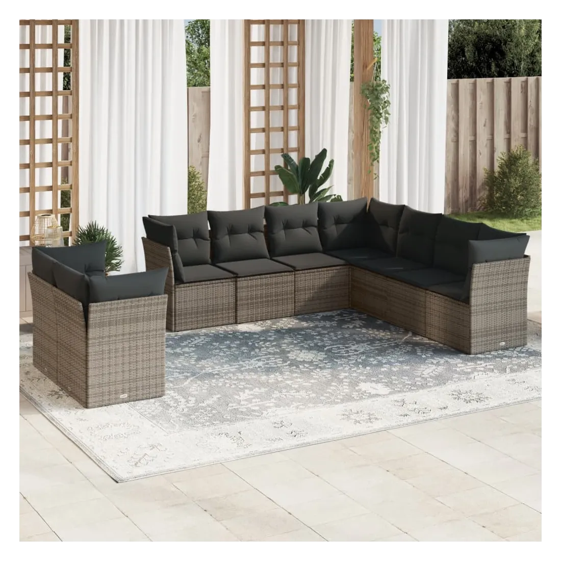 Cet ensemble de canapés de jardin est le complément parfait de votre arrière-cour, terrasse ou patio, offrant un espace confortable et accueillant pour discuter avec la famille et les amis ou simplement se détendre et profiter de l'extérieur. Matériau durable : la résine tressée, également connue sous le nom de poly rotin, est un matériau synthétique solide et nécessitant peu d'entretien qui ressemble au rotin naturel. Il est léger, facile à nettoyer et couramment utilisé pour les meubles d'extérieur en raison de sa durabilité et de ses propriétés de résistance aux intempéries.Fonction de rangement avec sac résistant à l'eau : chaque siège de jardin dispose d'un espace de rangement sous l'assise, complété par un sac résistant à l'eau pour ranger les coussins, les jouets et d'autres objets. Les sacs intérieurs sont dotés d'un couvercle et peuvent être solidement fixés aux sièges à l'aide de bandes auto-agrippantes pour plus de stabilité.Housse amovible et lavable : ces coussins de siège sont dotés de housses amovibles pour un lavage et un entretien faciles.Conception modulaire : cet ensemble de meubles d'extérieur a une conception modulaire, ce qui le rend complètement flexible et facile à déplacer, afin que vous puissiez créer un agencement de meubles d'extérieur personnalisé. Bon à savoir :Pour que vos meubles d'extérieur restent beaux, nous vous recommandons de les protéger avec une housse imperméable.