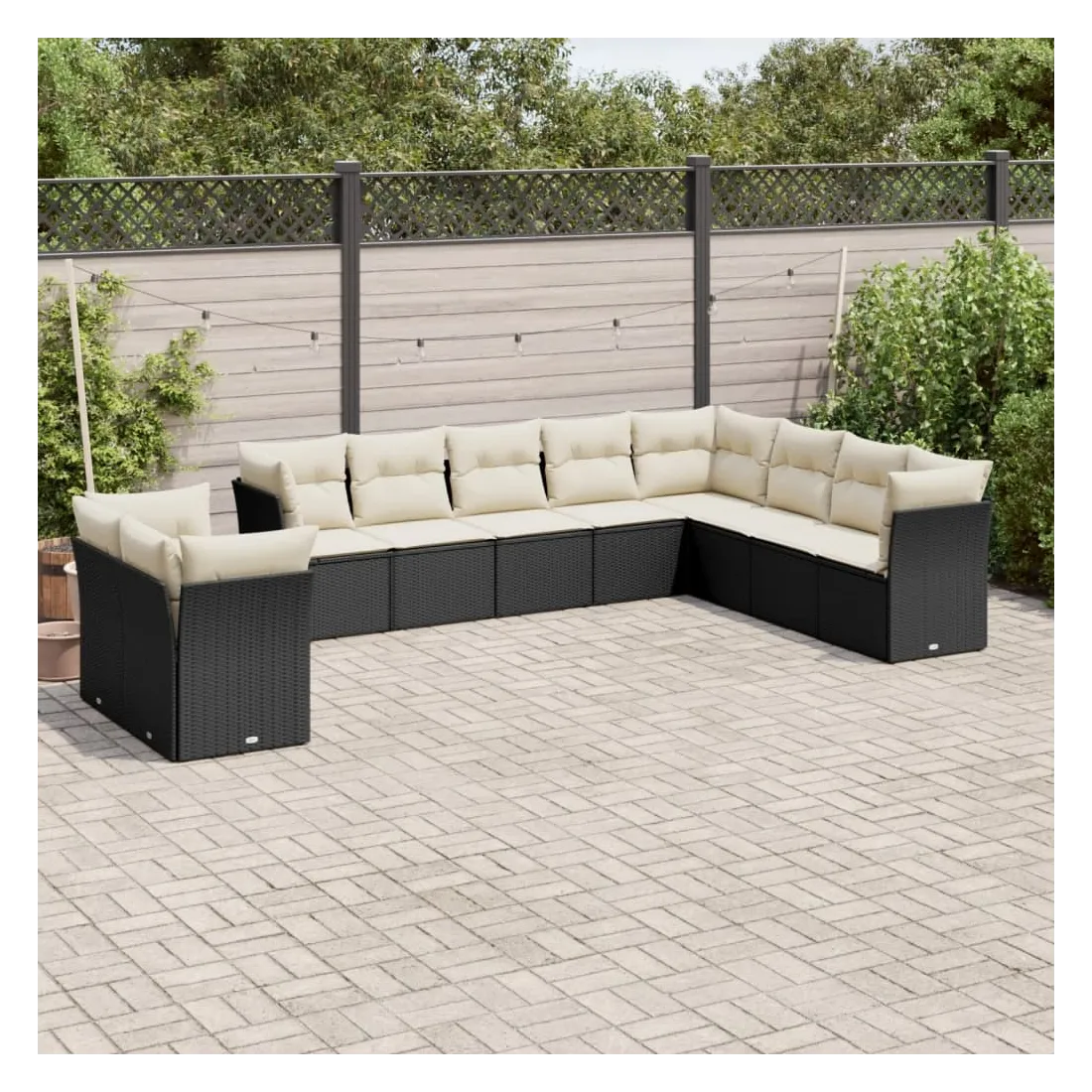 Cet ensemble de canapés de jardin est le complément parfait de votre arrière-cour, terrasse ou patio, offrant un espace confortable et accueillant pour discuter avec la famille et les amis ou simplement se détendre et profiter de l'extérieur. Matériau durable : la résine tressée, également connue sous le nom de poly rotin, est un matériau synthétique solide et nécessitant peu d'entretien qui ressemble au rotin naturel. Il est léger, facile à nettoyer et couramment utilisé pour les meubles d'extérieur en raison de sa durabilité et de ses propriétés de résistance aux intempéries.Fonction de rangement avec sac résistant à l'eau : chaque siège de jardin dispose d'un espace de rangement sous l'assise, complété par un sac résistant à l'eau pour ranger les coussins, les jouets et d'autres objets. Les sacs intérieurs sont dotés d'un couvercle et peuvent être solidement fixés aux sièges à l'aide de bandes auto-agrippantes pour plus de stabilité.Housse amovible et lavable : ces coussins de siège sont dotés de housses amovibles pour un lavage et un entretien faciles.Conception modulaire : cet ensemble de meubles d'extérieur a une conception modulaire, ce qui le rend complètement flexible et facile à déplacer, afin que vous puissiez créer un agencement de meubles d'extérieur personnalisé. Bon à savoir :Pour que vos meubles d'extérieur restent beaux, nous vous recommandons de les protéger avec une housse imperméable.