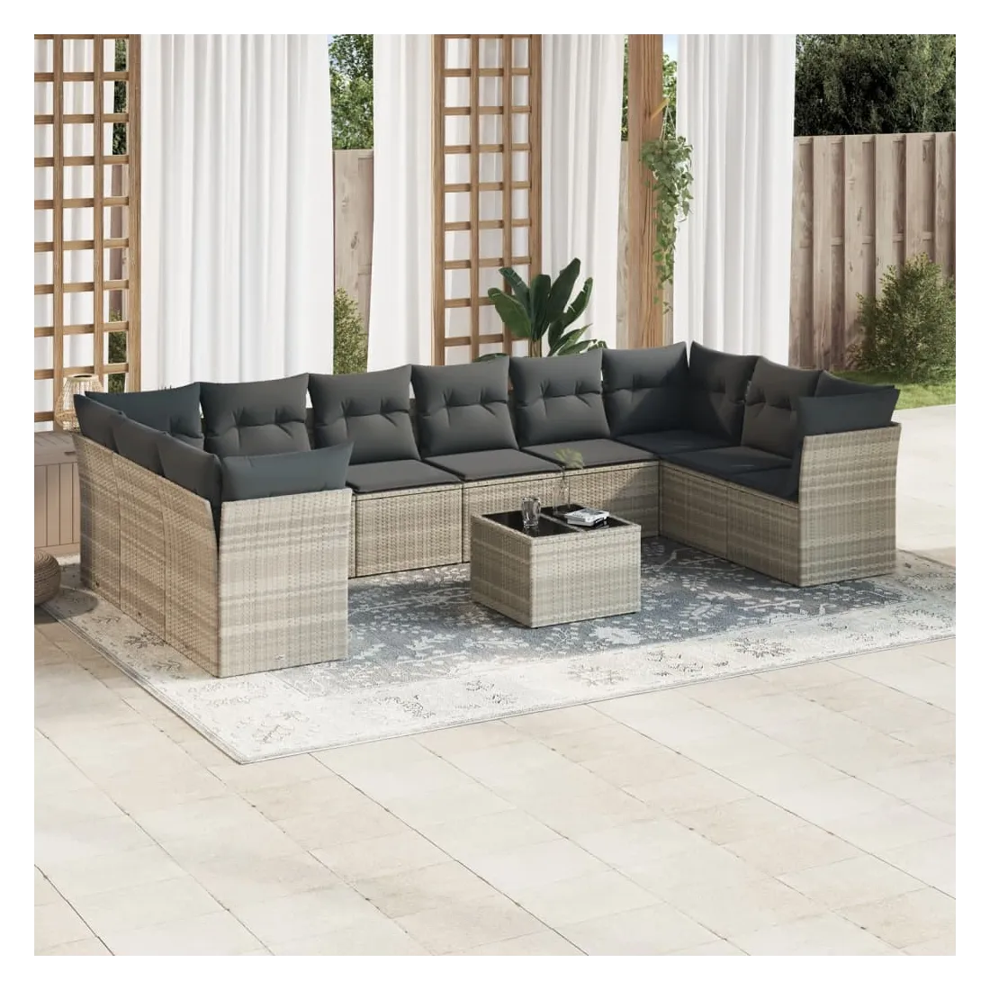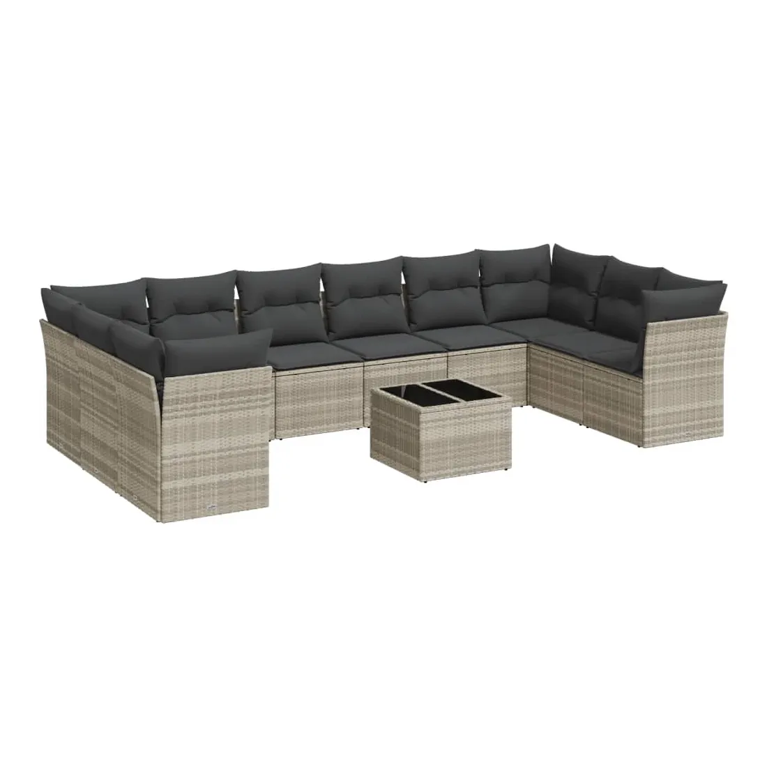 Salon de jardin 11 pcs avec coussins gris clair résine tressée