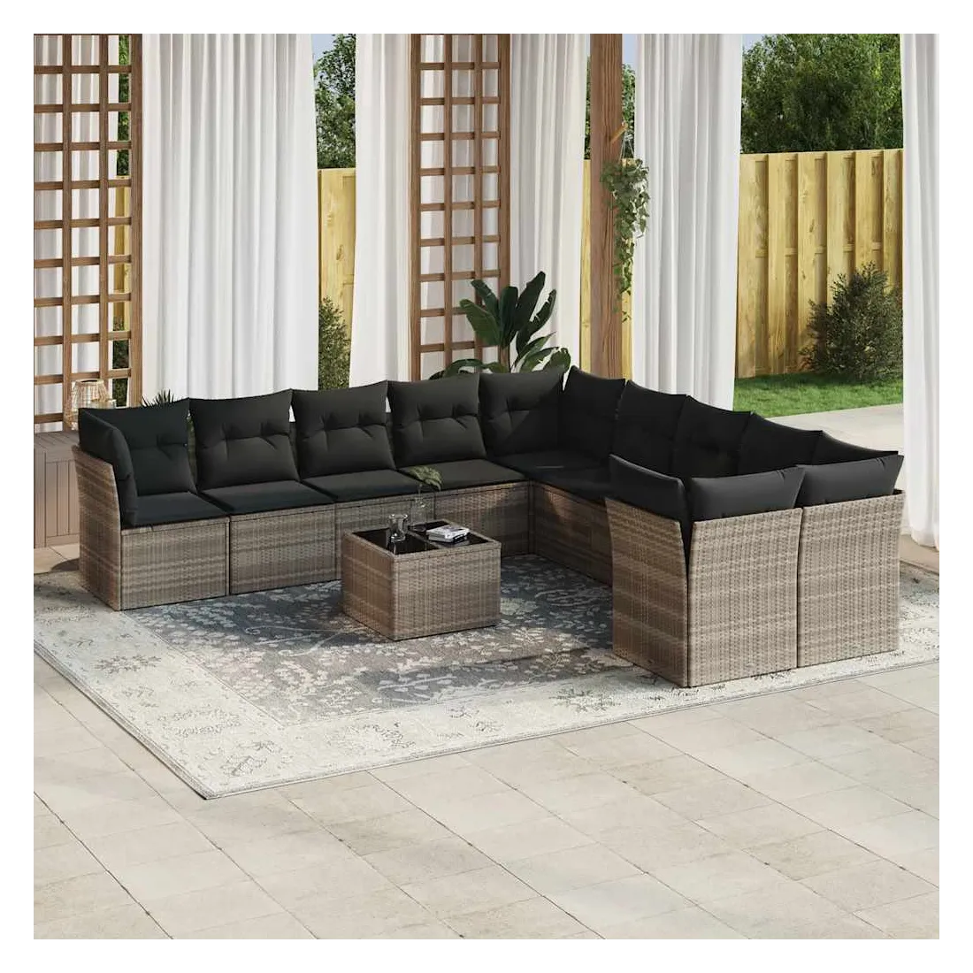 Salon de jardin 11 pcs avec coussins gris clair résine tressée