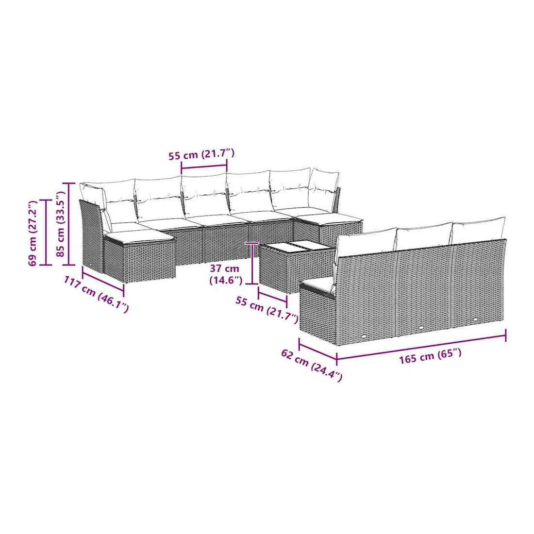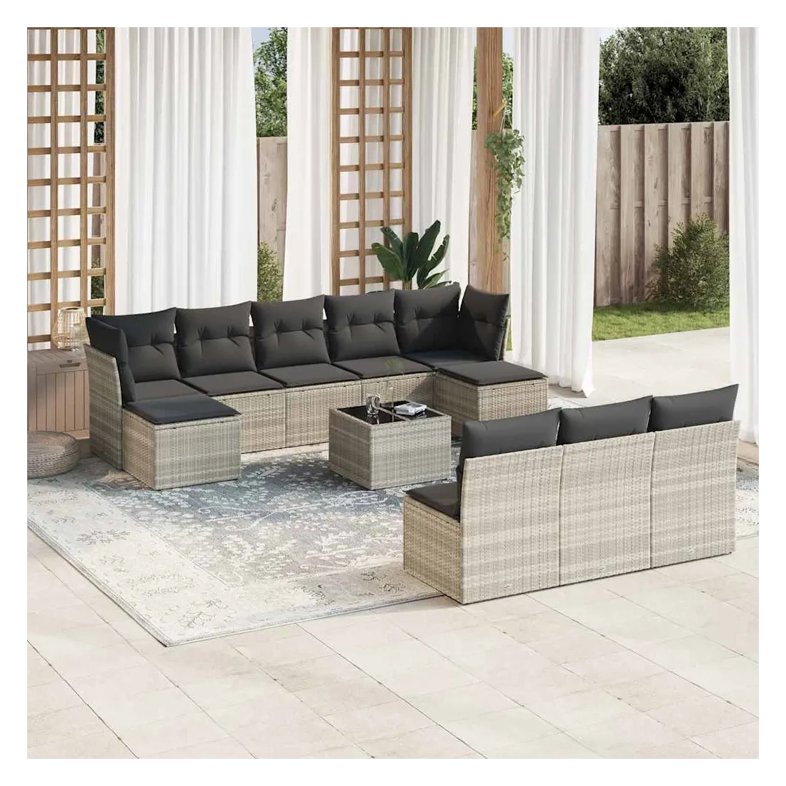 Salon de jardin 11 pcs avec coussins gris clair résine tressée