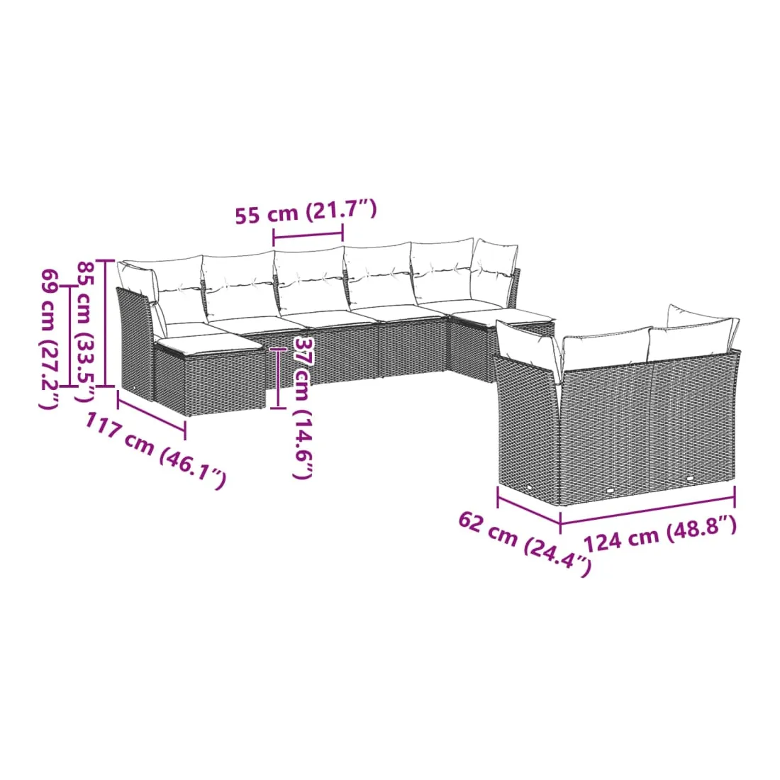 - 9 x coussin d'assise avec housse amovible et lavable