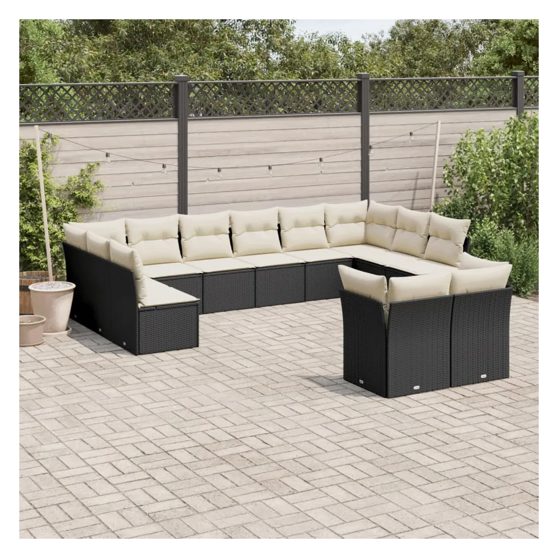 Cet ensemble de canapés de jardin est le complément parfait de votre arrière-cour, terrasse ou patio, offrant un espace confortable et accueillant pour discuter avec la famille et les amis ou simplement se détendre et profiter de l'extérieur. Matériau durable : la résine tressée, également connue sous le nom de poly rotin, est un matériau synthétique solide et nécessitant peu d'entretien qui ressemble au rotin naturel. Il est léger, facile à nettoyer et couramment utilisé pour les meubles d'extérieur en raison de sa durabilité et de ses propriétés de résistance aux intempéries.Fonction de rangement avec sac résistant à l'eau : chaque siège de jardin dispose d'un espace de rangement sous l'assise, complété par un sac résistant à l'eau pour ranger les coussins, les jouets et d'autres objets. Les sacs intérieurs sont dotés d'un couvercle et peuvent être solidement fixés aux sièges à l'aide de bandes auto-agrippantes pour plus de stabilité.Housse amovible et lavable : ces coussins de siège sont dotés de housses amovibles pour un lavage et un entretien faciles.Conception modulaire : cet ensemble de meubles d'extérieur a une conception modulaire, ce qui le rend complètement flexible et facile à déplacer, afin que vous puissiez créer un agencement de meubles d'extérieur personnalisé. Bon à savoir :Pour que vos meubles d'extérieur restent beaux, nous vous recommandons de les protéger avec une housse imperméable.