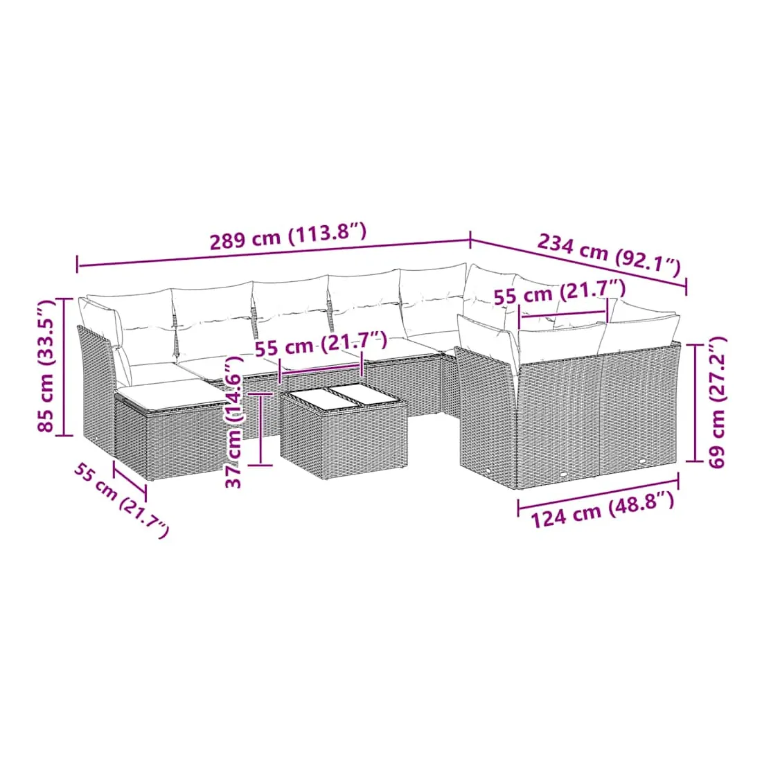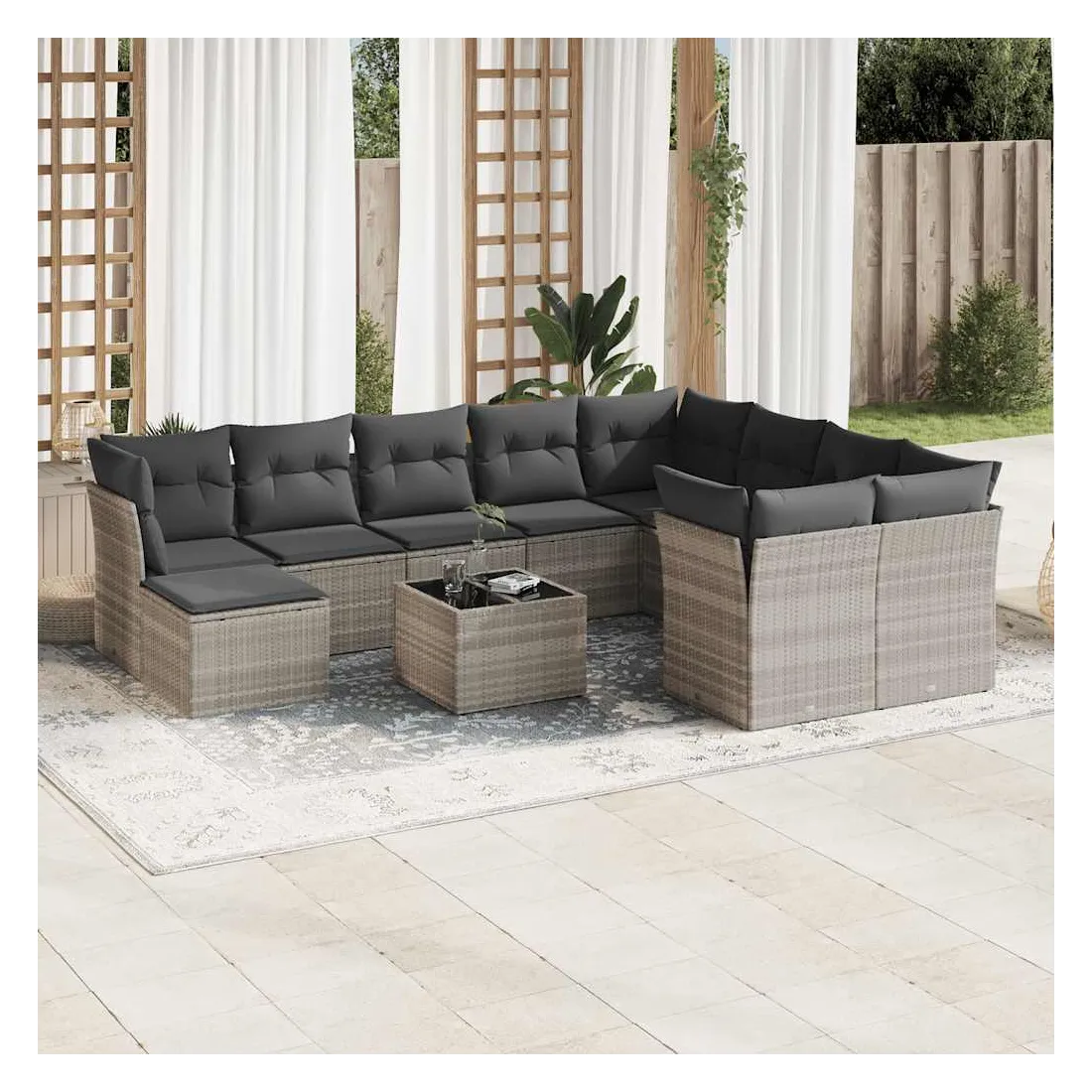 Salon de jardin 11 pcs avec coussins gris clair résine tressée