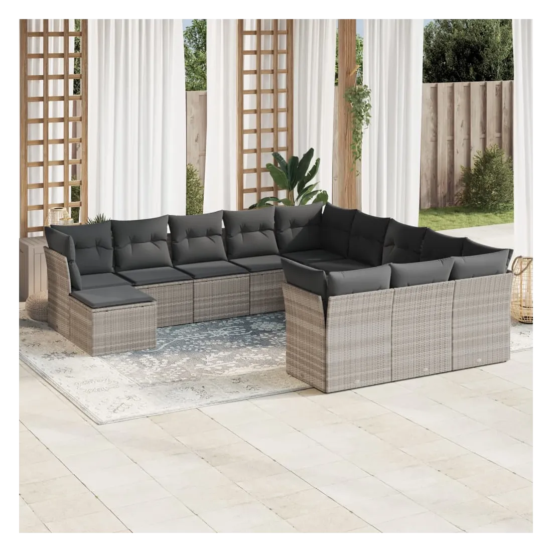 Salon de jardin avec coussins 12 pcs gris clair résine tressée