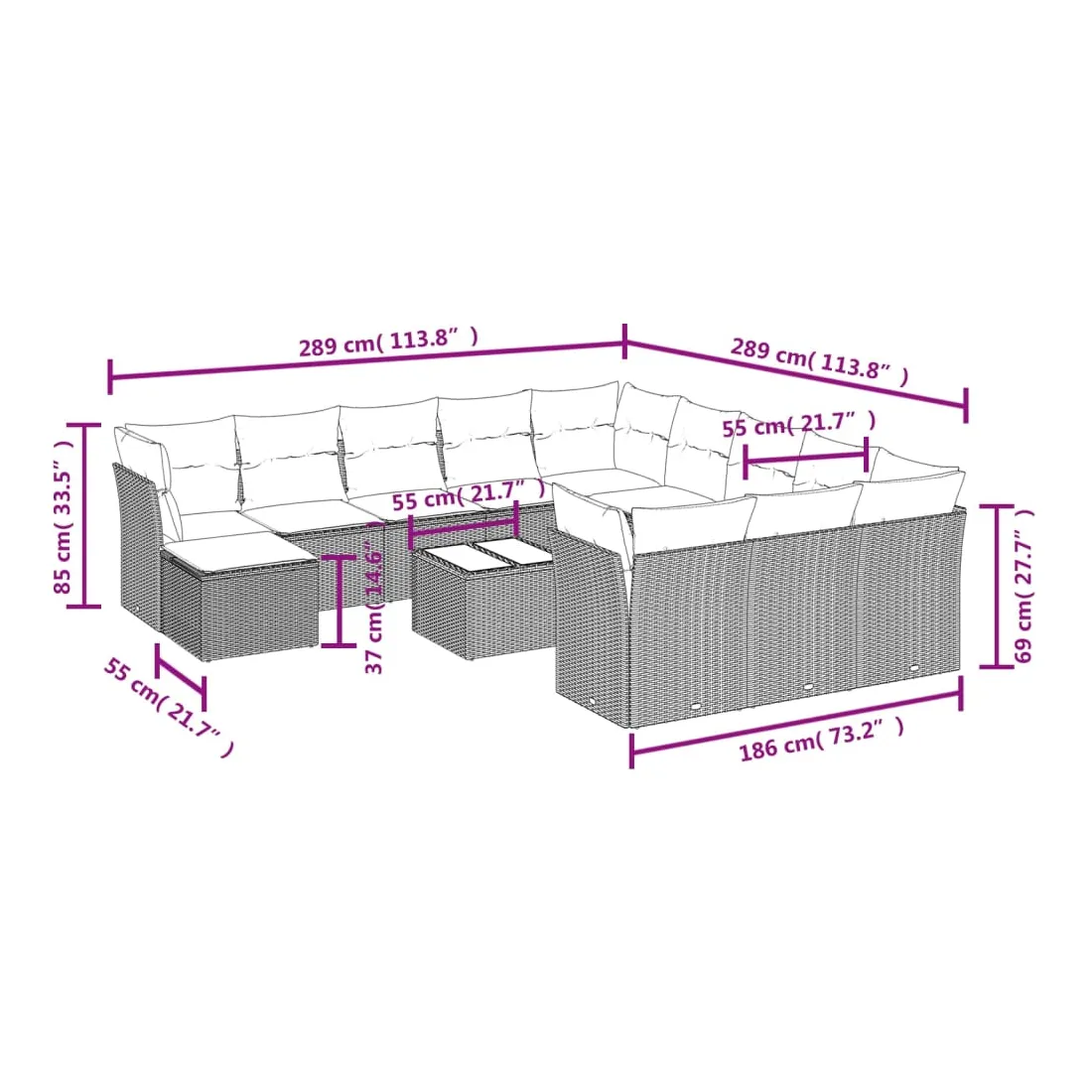 - Dimensions : 55 x 55 x 37 cm (L x l x H)