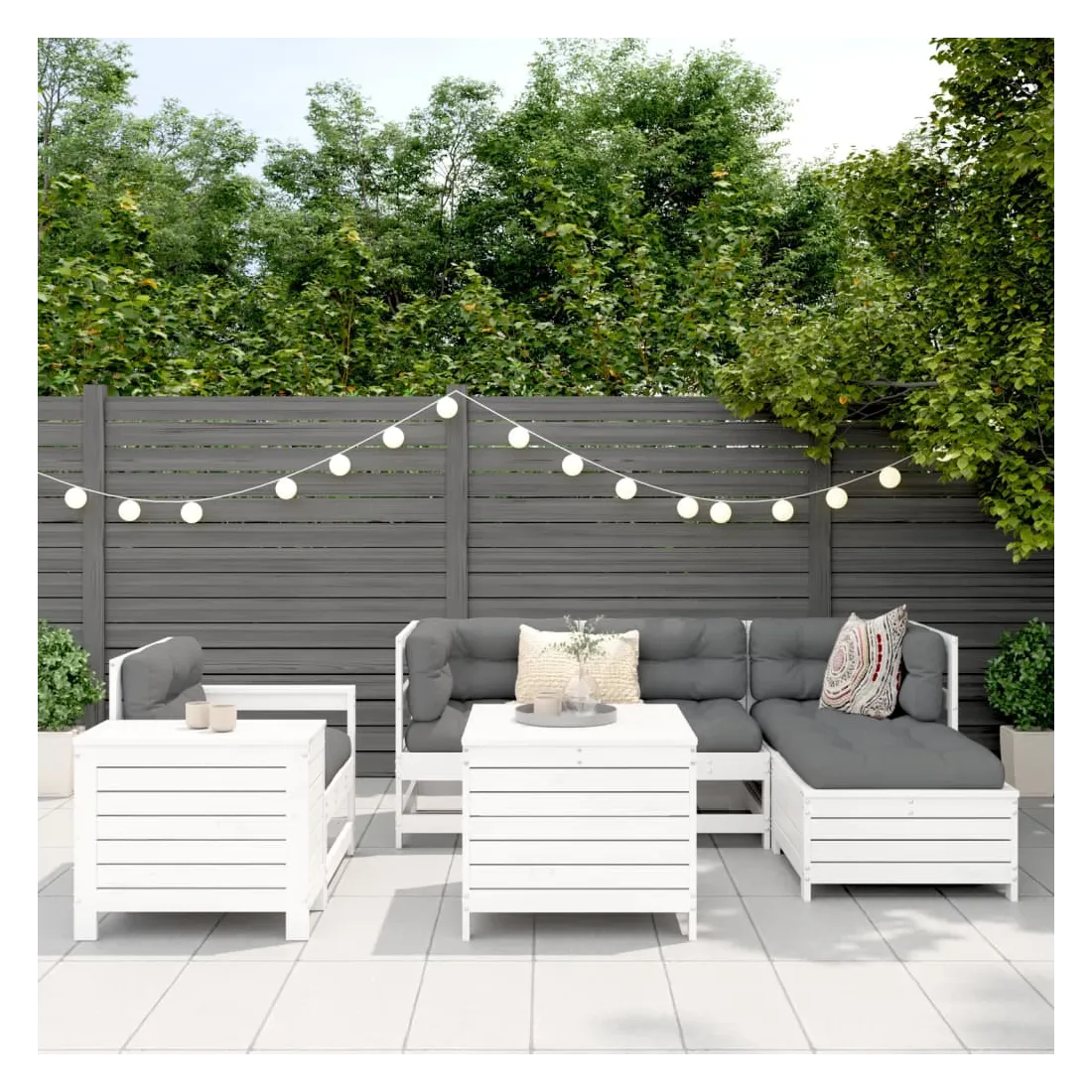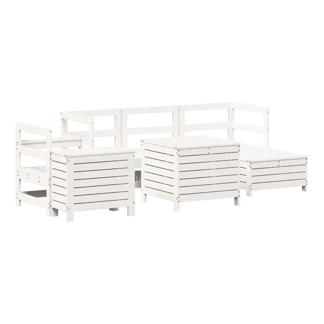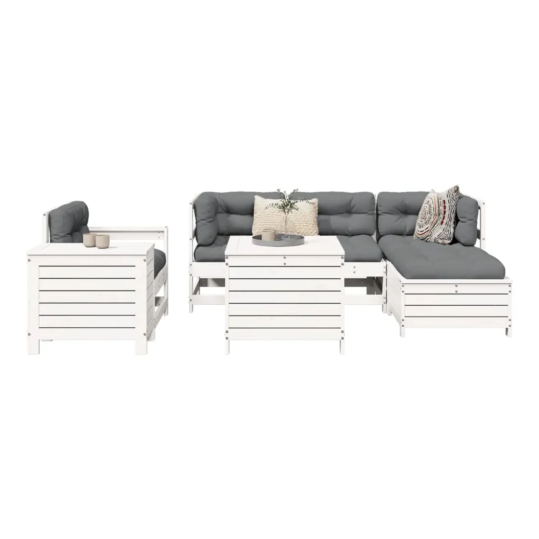 Salon de jardin 7 pcs blanc bois de pin massif