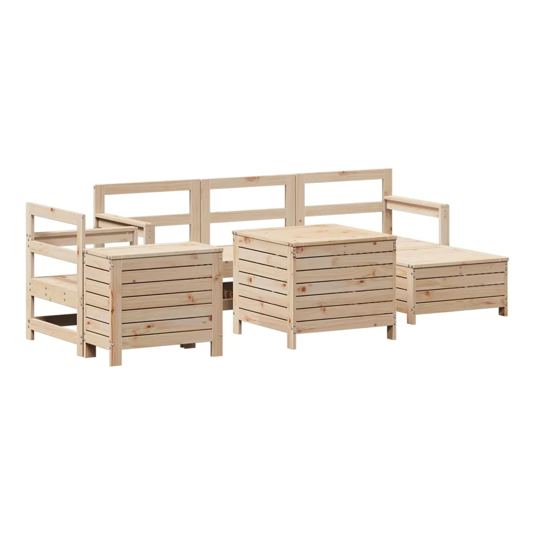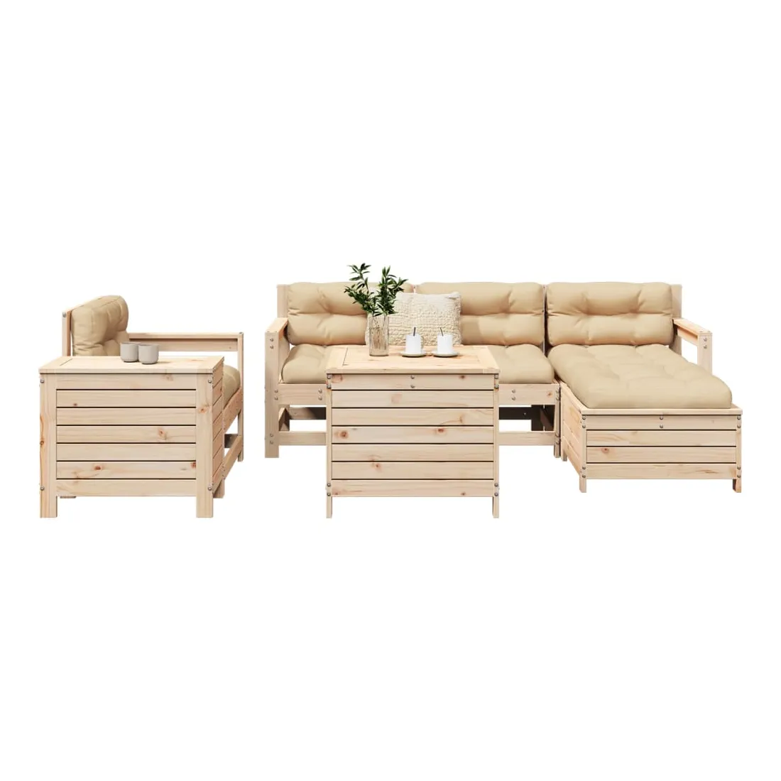 vidaXLCet ensemble de salon de jardin en bois avec un design à lattes sera un excellent complément à votre jardin, patio ou terrasse pour profiter d'un moment agréable avec votre famille ou vos amis. Matériau robuste et durable : le bois de pin massif est connu pour sa résistance et sa durabilité. Ses grains droits et ses nœuds distinctifs contribuent à son charme rustique. Bien ventilé et prévention de l'accumulation d'eau : la conception à lattes favorise une circulation optimale de l'air et empêche efficacement l'accumulation d'eau, assurant ainsi une assise sèche et confortable. Utilisation polyvalente : le repose-pied de jardin peut non seulement être utilisé pour s'asseoir ou se détendre, mais il peut également être utilisé comme table basse pour contenir vos boissons, votre nourriture et d'autres décorations. Table pratique : la table de jardin vous offre un endroit pratique pour atteindre facilement vos essentiels. Conception modulaire : cet ensemble de meubles d'extérieur a une conception modulaire, ce qui le rend complètement flexible et facile à déplacer, afin que vous puissiez créer un agencement de meubles d'extérieur personnalisé. Bon à savoir :Pour que vos meubles d'extérieur restent beaux, nous vous recommandons de les protéger avec une housse imperméable.