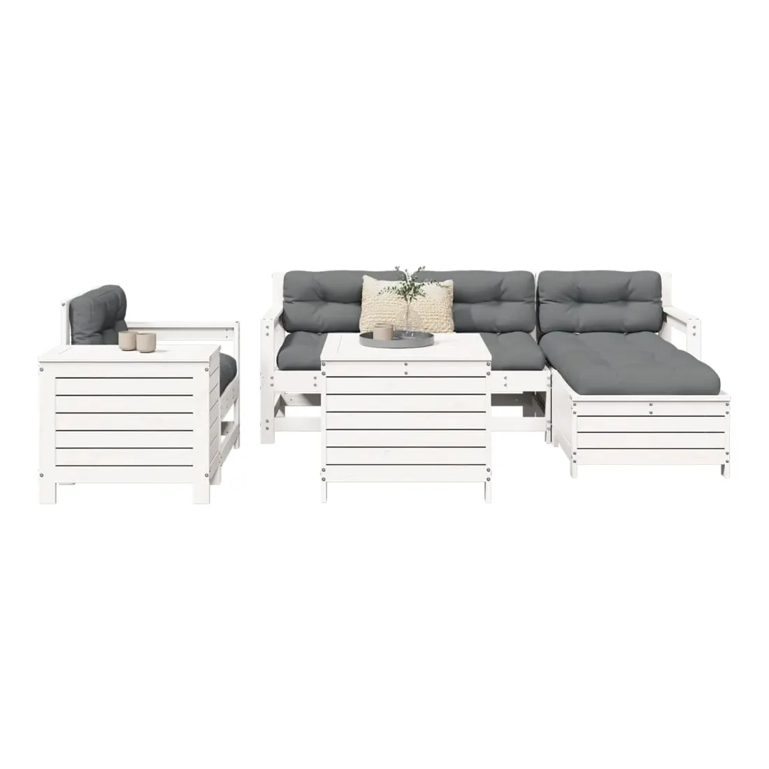 Salon de jardin 7 pcs blanc bois de pin massif
