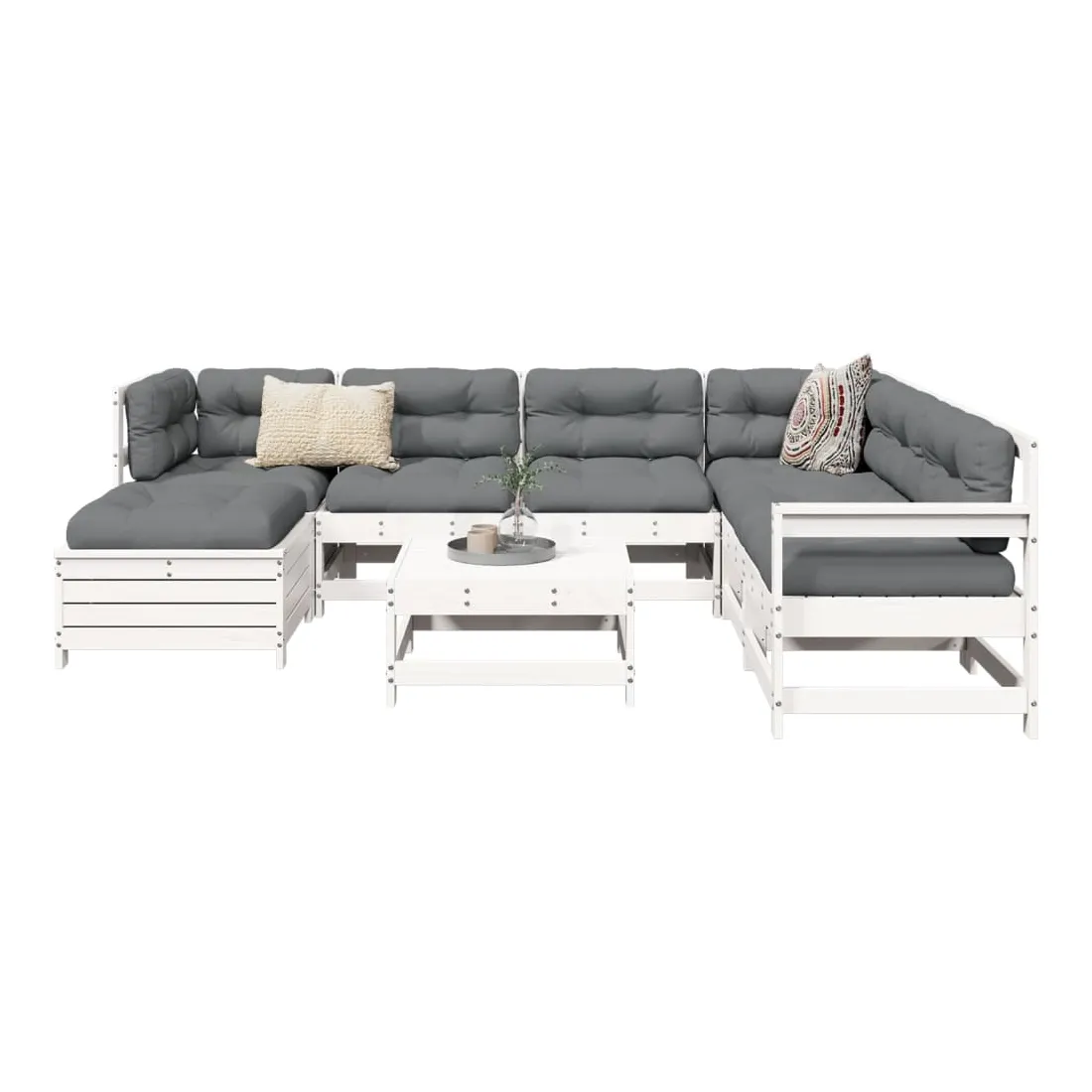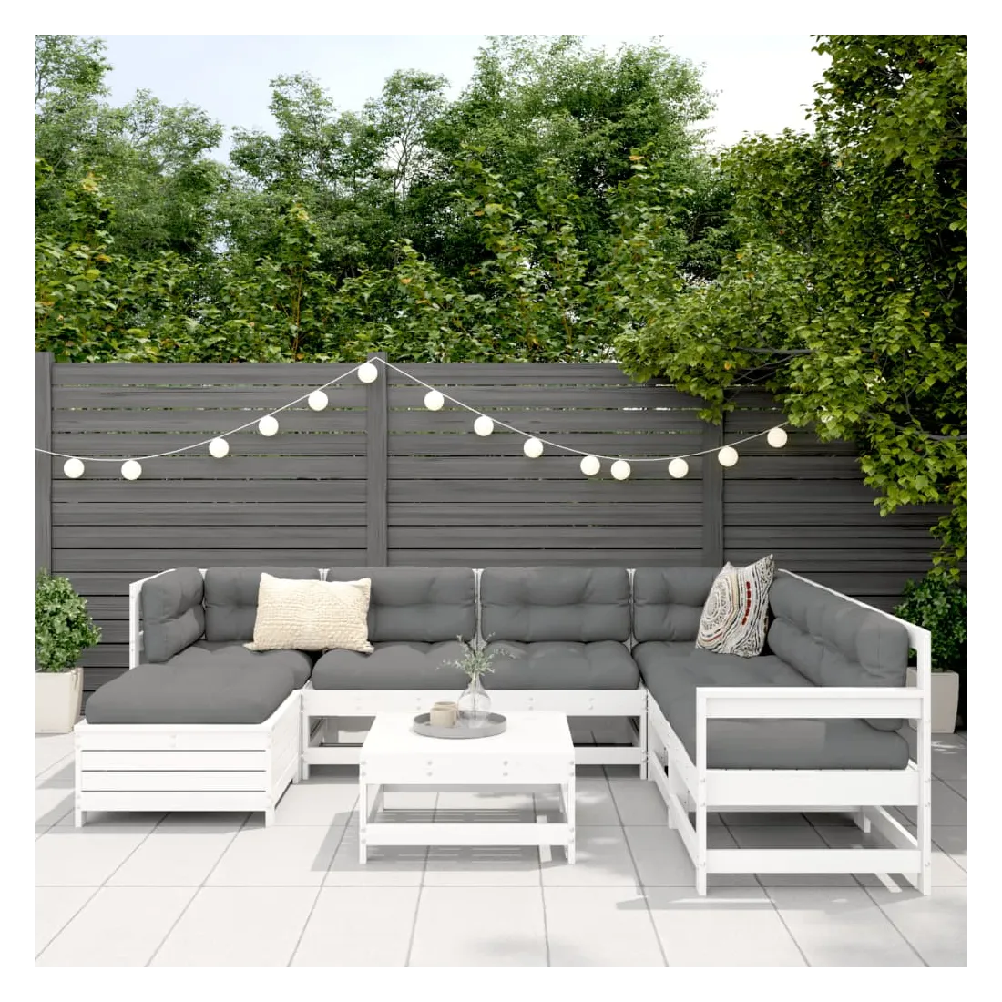 Cet ensemble de salon de jardin en bois avec un design à lattes sera un excellent complément à votre jardin, patio ou terrasse pour profiter d'un moment agréable avec votre famille ou vos amis. Matériau robuste et durable : le bois de pin massif est connu pour sa résistance et sa durabilité. Ses grains droits et ses nœuds distinctifs contribuent à son charme rustique. Bien ventilé et prévention de l'accumulation d'eau : la conception à lattes favorise une circulation optimale de l'air et empêche efficacement l'accumulation d'eau, assurant ainsi une assise sèche et confortable. Utilisation polyvalente : le repose-pied de jardin peut non seulement être utilisé pour s'asseoir ou se détendre, mais il peut également être utilisé comme table basse pour contenir vos boissons, votre nourriture et d'autres décorations. Conception modulaire : cet ensemble de meubles d'extérieur a une conception modulaire, ce qui le rend complètement flexible et facile à déplacer, afin que vous puissiez créer un agencement de meubles d'extérieur personnalisé. Bon à savoir :Pour que vos meubles d'extérieur restent beaux, nous vous recommandons de les protéger avec une housse imperméable.