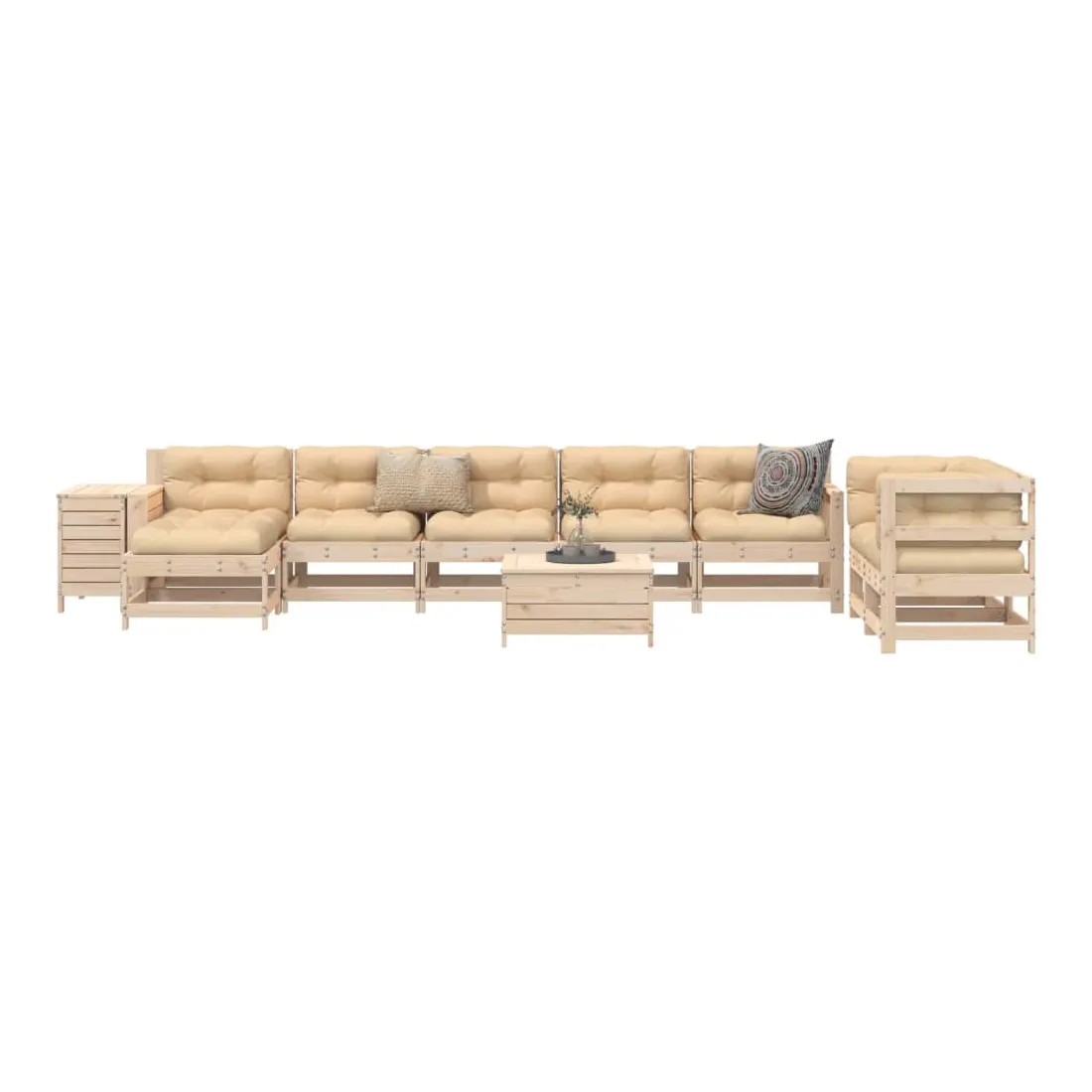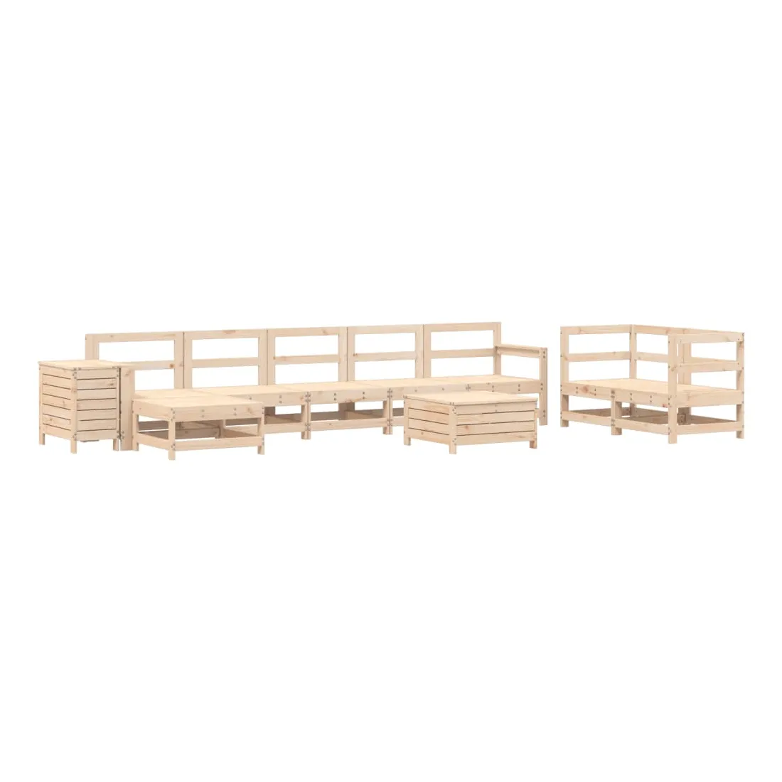 Cet ensemble de salon de jardin en bois avec un design à lattes sera un excellent complément à votre jardin, patio ou terrasse pour profiter d'un moment agréable avec votre famille ou vos amis. Matériau robuste et durable : le bois de pin massif est connu pour sa résistance et sa durabilité. Ses grains droits et ses nœuds distinctifs contribuent à son charme rustique. Bien ventilé et prévention de l'accumulation d'eau : la conception à lattes favorise une circulation optimale de l'air et empêche efficacement l'accumulation d'eau, assurant ainsi une assise sèche et confortable. Utilisation polyvalente : le repose-pied de jardin peut non seulement être utilisé pour s'asseoir ou se détendre, mais il peut également être utilisé comme table basse pour contenir vos boissons, votre nourriture et d'autres décorations. Table pratique : la table de jardin vous offre un endroit pratique pour atteindre facilement vos essentiels. Conception modulaire : cet ensemble de meubles d'extérieur a une conception modulaire, ce qui le rend complètement flexible et facile à déplacer, afin que vous puissiez créer un agencement de meubles d'extérieur personnalisé. Bon à savoir :Pour que vos meubles d'extérieur restent beaux, nous vous recommandons de les protéger avec une housse imperméable.