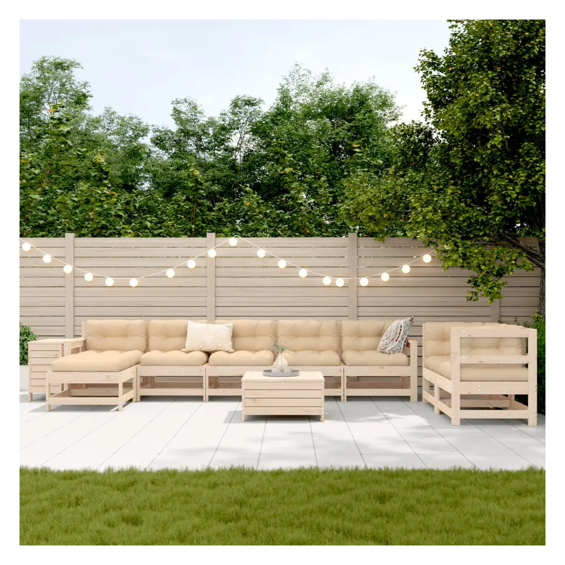 Salon de jardin 10 pcs bois de pin massif