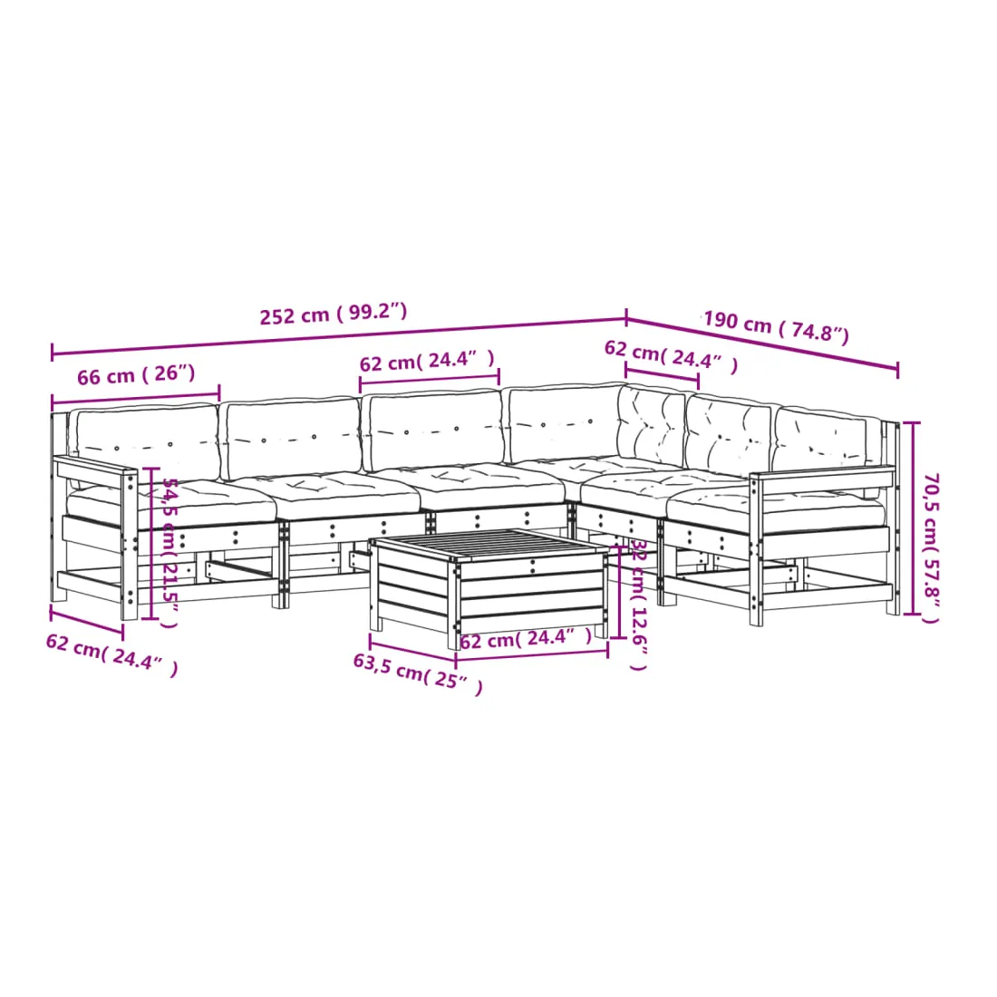 Salon de jardin 7 pcs avec coussins bois massif douglas