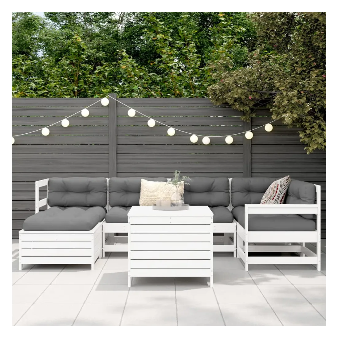 Cet ensemble de salon de jardin en bois avec un design à lattes sera un excellent complément à votre jardin, patio ou terrasse pour profiter d'un moment agréable avec votre famille ou vos amis. Matériau robuste et durable : le bois de pin massif est connu pour sa résistance et sa durabilité. Ses grains droits et ses nœuds distinctifs contribuent à son charme rustique. Bien ventilé et prévention de l'accumulation d'eau : la conception à lattes favorise une circulation optimale de l'air et empêche efficacement l'accumulation d'eau, assurant ainsi une assise sèche et confortable. Utilisation polyvalente : le repose-pied de jardin peut non seulement être utilisé pour s'asseoir ou se détendre, mais il peut également être utilisé comme table basse pour contenir vos boissons, votre nourriture et d'autres décorations. Table pratique : la table de jardin vous offre un endroit pratique pour atteindre facilement vos essentiels. Conception modulaire : cet ensemble de meubles d'extérieur a une conception modulaire, ce qui le rend complètement flexible et facile à déplacer, afin que vous puissiez créer un agencement de meubles d'extérieur personnalisé. Bon à savoir :Pour que vos meubles d'extérieur restent beaux, nous vous recommandons de les protéger avec une housse imperméable.