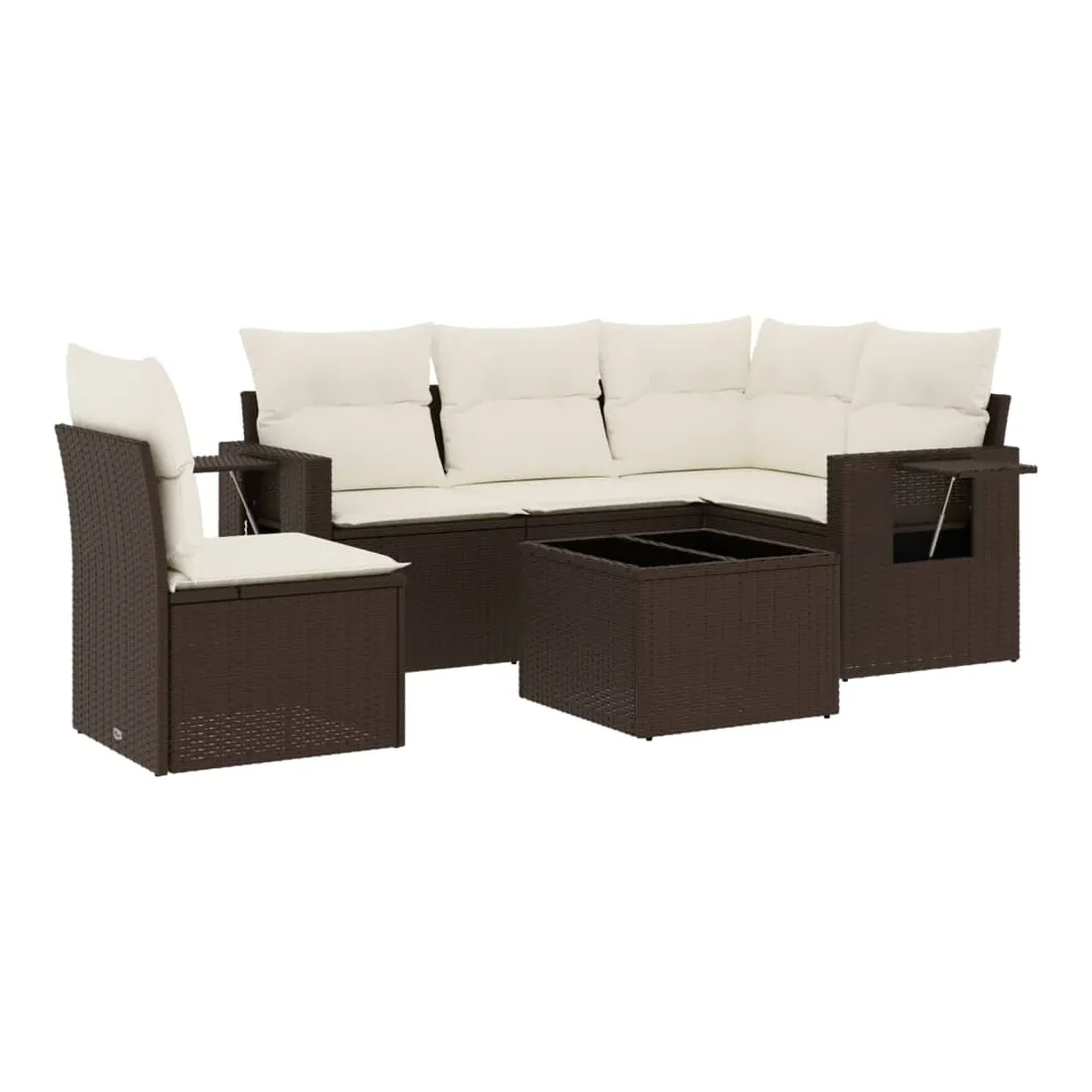Cet ensemble de canapés de jardin est le complément parfait de votre arrière-cour, terrasse ou patio, offrant un espace confortable et accueillant pour discuter avec la famille et les amis ou simplement se détendre et profiter de l'extérieur. Matériau durable : la résine tressée, également connue sous le nom de poly rotin, est un matériau synthétique solide et nécessitant peu d'entretien qui ressemble au rotin naturel. Il est léger, facile à nettoyer et couramment utilisé pour les meubles d'extérieur en raison de sa durabilité et de ses propriétés de résistance aux intempéries.Fonction de rangement avec sac résistant à l'eau : le mobilier de jardin dispose d'un espace de rangement sous l'assise, complété par un sac résistant à l'eau pour ranger coussins, jouets et autres objets. Le sac intérieur peut être solidement fixé au mobilier d'extérieur grâce à des attaches auto-agrippantes pour plus de stabilité.Table d'appoint pratique : ce mobilier d'extérieur comprend une table d'appoint pliable avec un ressort à gaz sur les accoudoirs, offrant un endroit pratique pour garder vos essentiels à portée de main.Housse amovible et lavable : ces coussins de siège sont dotés de housses amovibles pour un lavage et un entretien faciles.Conception modulaire : cet ensemble de meubles d'extérieur a une conception modulaire, ce qui le rend complètement flexible et facile à déplacer, afin que vous puissiez créer un agencement de meubles d'extérieur personnalisé. Bon à savoir :Pour que vos meubles d'extérieur restent beaux, nous vous recommandons de les protéger avec une housse imperméable.