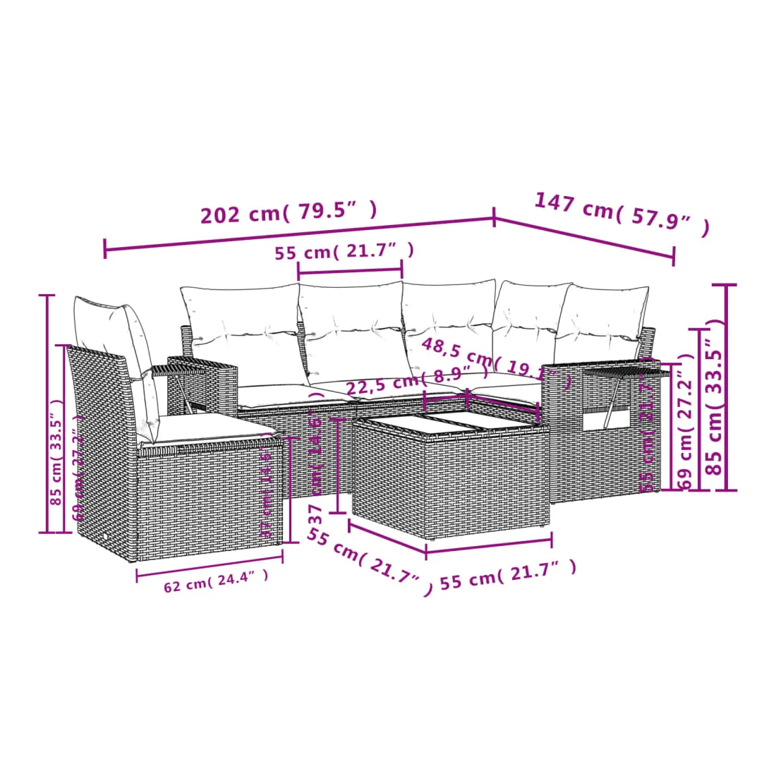 - Dimensions du coussin de dossier : 55 x 45 x 13 cm (L x l x é)