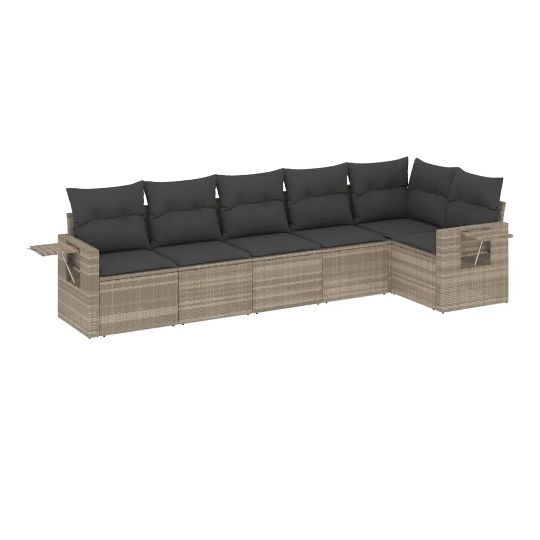 Salon de jardin 6 pcs avec coussins gris clair résine tressée