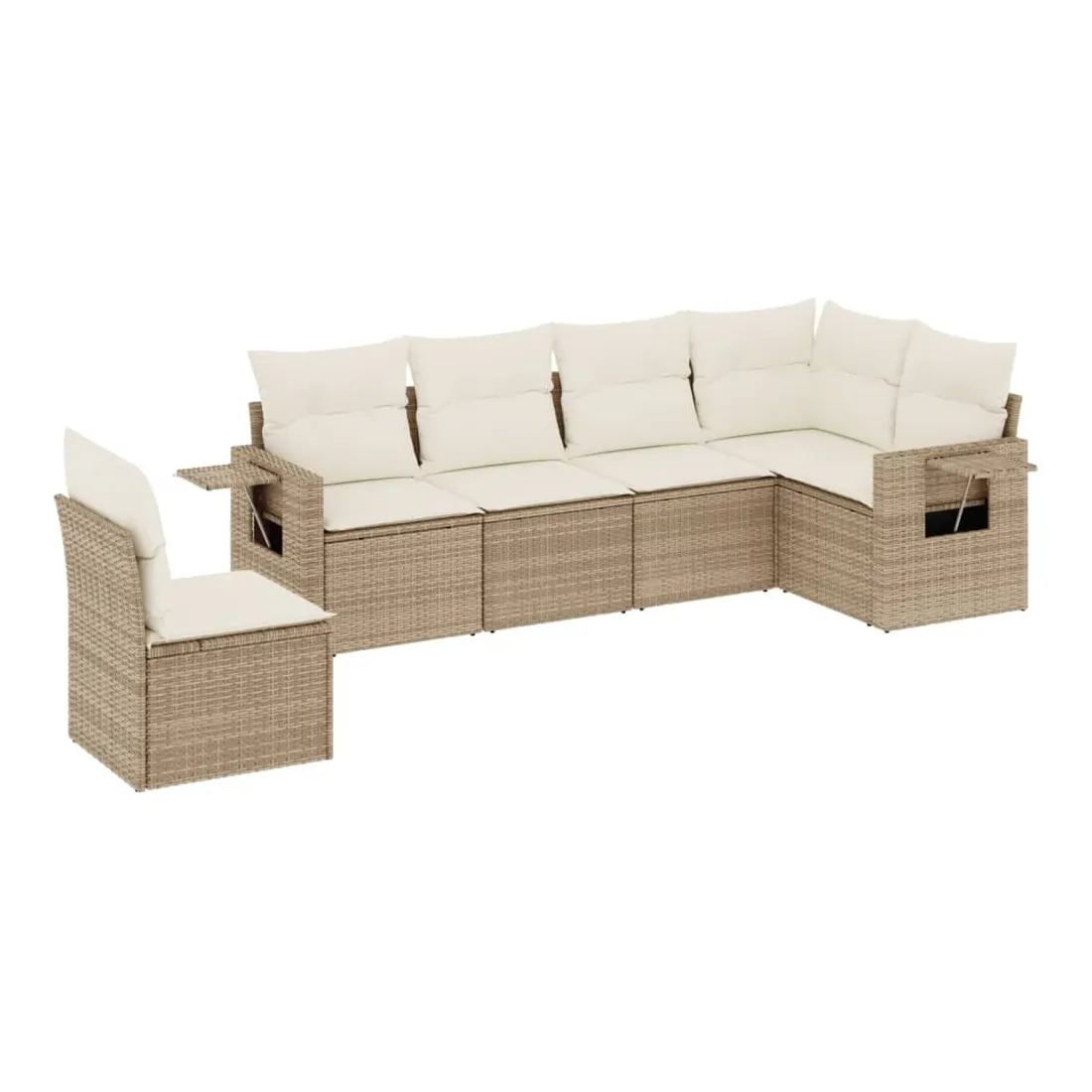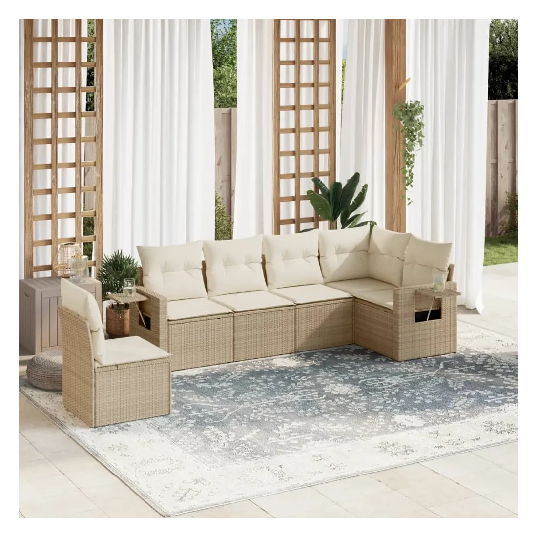 Salon de jardin avec coussins 6 pcs beige résine tressée