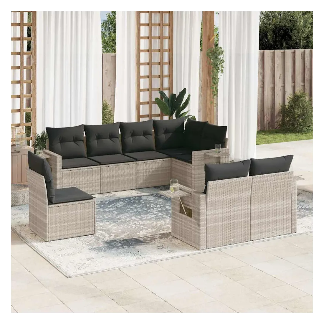 Cet ensemble de canapés de jardin est le complément parfait de votre arrière-cour, terrasse ou patio, offrant un espace confortable et accueillant pour discuter avec la famille et les amis ou simplement se détendre et profiter de l'extérieur. Matériau durable : la résine tressée, également connue sous le nom de poly rotin, est un matériau synthétique solide et nécessitant peu d'entretien qui ressemble au rotin naturel. Il est léger, facile à nettoyer et couramment utilisé pour les meubles d'extérieur en raison de sa durabilité et de ses propriétés de résistance aux intempéries.Fonction de rangement avec sac résistant à l'eau : le mobilier de jardin dispose d'un espace de rangement sous l'assise, complété par un sac résistant à l'eau pour ranger coussins, jouets et autres objets. Le sac intérieur peut être solidement fixé au mobilier d'extérieur grâce à des attaches auto-agrippantes pour plus de stabilité.Table d'appoint pratique : ce mobilier d'extérieur comprend une table d'appoint pliable avec un ressort à gaz sur les accoudoirs, offrant un endroit pratique pour garder vos essentiels à portée de main.Housse amovible et lavable : ces coussins de siège sont dotés de housses amovibles pour un lavage et un entretien faciles.Conception modulaire : cet ensemble de meubles d'extérieur a une conception modulaire, ce qui le rend complètement flexible et facile à déplacer, afin que vous puissiez créer un agencement de meubles d'extérieur personnalisé. Bon à savoir :Pour que vos meubles d'extérieur restent beaux, nous vous recommandons de les protéger avec une housse imperméable.