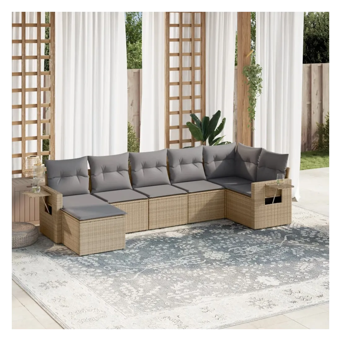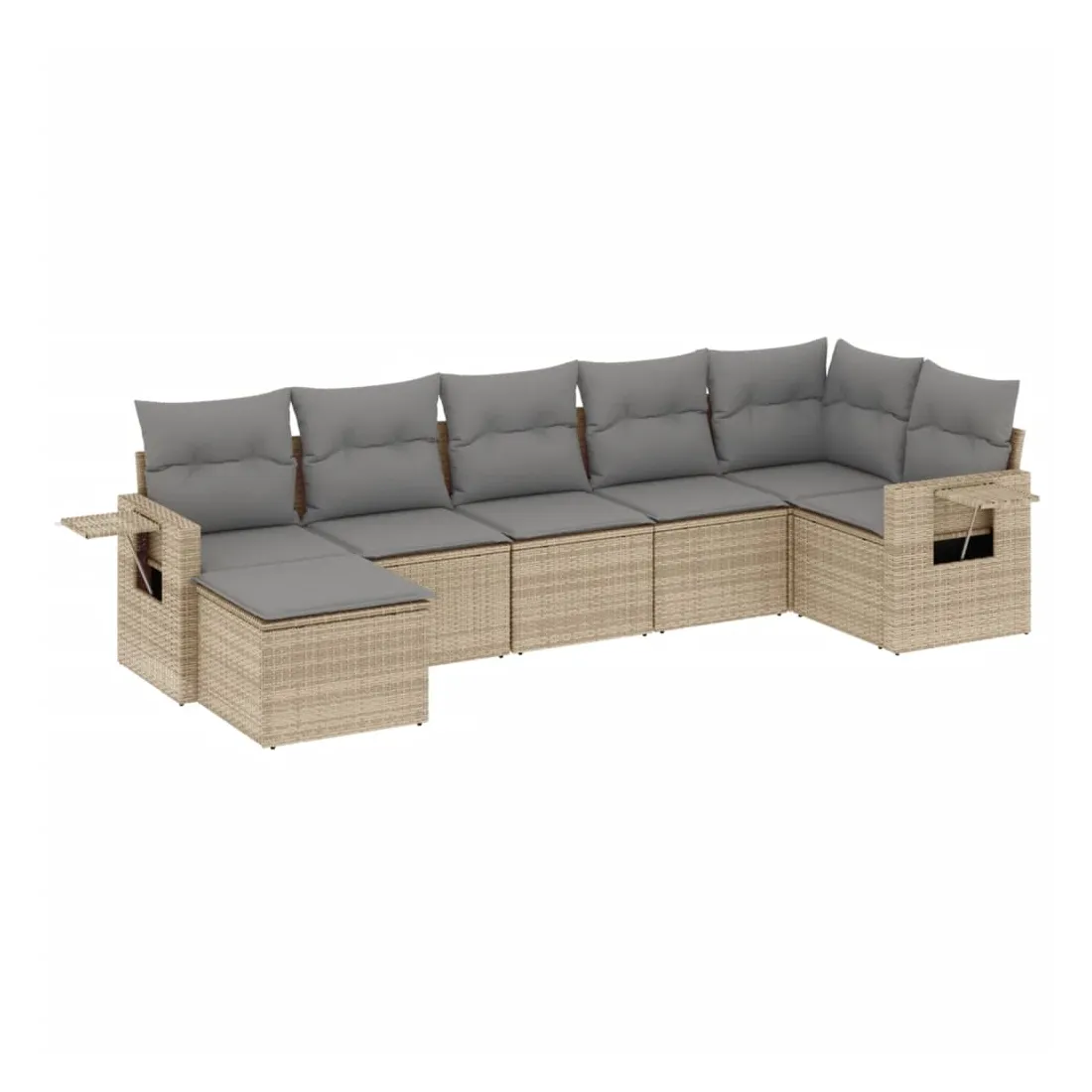 Salon de jardin avec coussins 7 pcs beige résine tressée