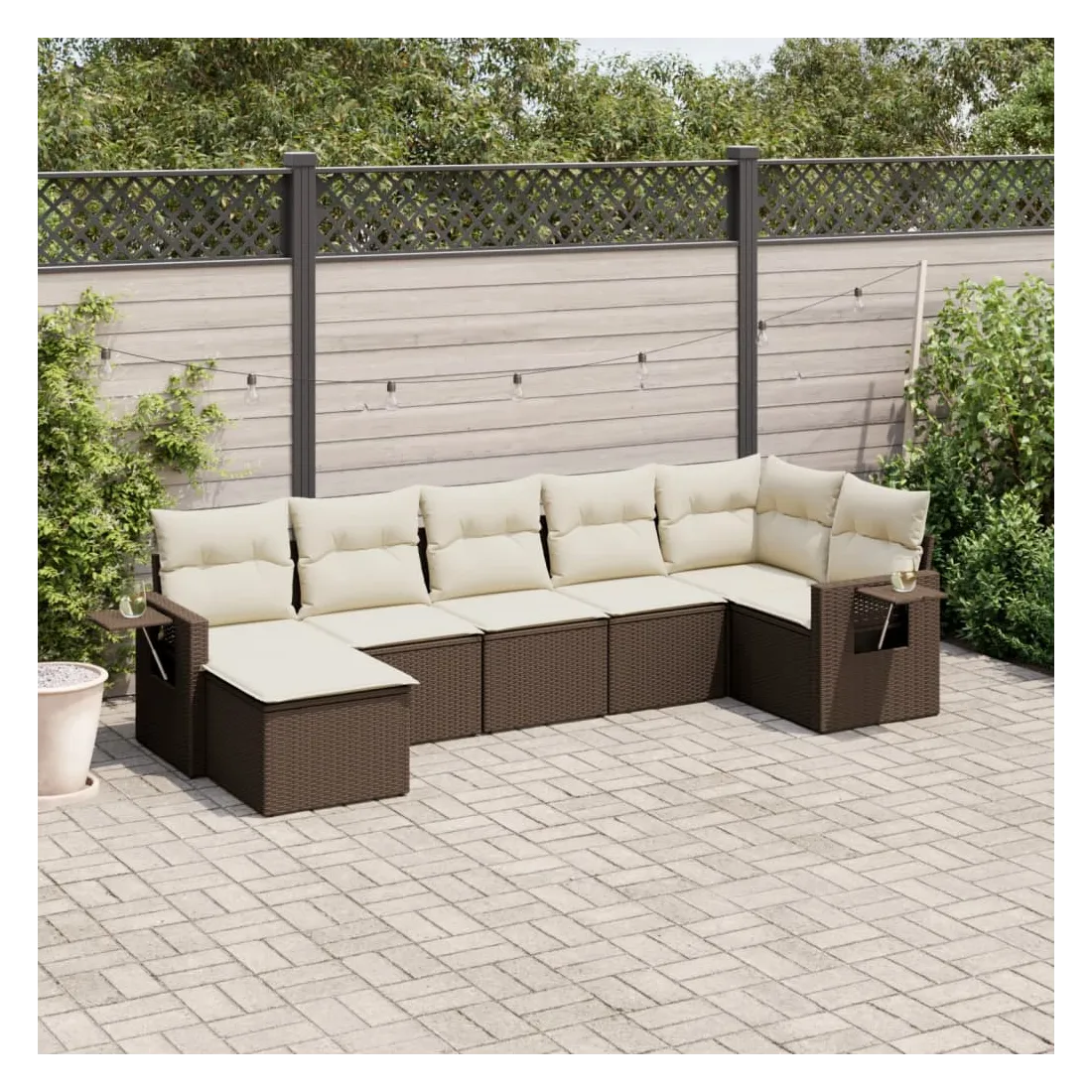 Cet ensemble de canapés de jardin est le complément parfait de votre arrière-cour, terrasse ou patio, offrant un espace confortable et accueillant pour discuter avec la famille et les amis ou simplement se détendre et profiter de l'extérieur. Matériau durable : la résine tressée, également connue sous le nom de poly rotin, est un matériau synthétique solide et nécessitant peu d'entretien qui ressemble au rotin naturel. Il est léger, facile à nettoyer et couramment utilisé pour les meubles d'extérieur en raison de sa durabilité et de ses propriétés de résistance aux intempéries.Fonction de rangement avec sac résistant à l'eau : le mobilier de jardin dispose d'un espace de rangement sous l'assise, complété par un sac résistant à l'eau pour ranger coussins, jouets et autres objets. Le sac intérieur peut être solidement fixé au mobilier d'extérieur grâce à des attaches auto-agrippantes pour plus de stabilité.Table d'appoint pratique : ce mobilier d'extérieur comprend une table d'appoint pliable avec un ressort à gaz sur les accoudoirs, offrant un endroit pratique pour garder vos essentiels à portée de main.Housse amovible et lavable : ces coussins de siège sont dotés de housses amovibles pour un lavage et un entretien faciles.Conception modulaire : cet ensemble de meubles d'extérieur a une conception modulaire, ce qui le rend complètement flexible et facile à déplacer, afin que vous puissiez créer un agencement de meubles d'extérieur personnalisé. Bon à savoir :Pour que vos meubles d'extérieur restent beaux, nous vous recommandons de les protéger avec une housse imperméable.