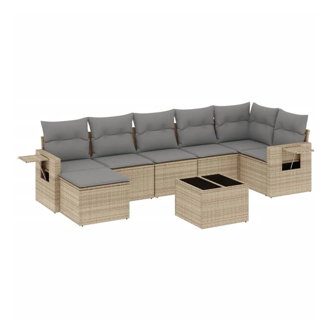 Cet ensemble de canapés de jardin est le complément parfait de votre arrière-cour, terrasse ou patio, offrant un espace confortable et accueillant pour discuter avec la famille et les amis ou simplement se détendre et profiter de l'extérieur. Matériau durable : la résine tressée, également connue sous le nom de poly rotin, est un matériau synthétique solide et nécessitant peu d'entretien qui ressemble au rotin naturel. Il est léger, facile à nettoyer et couramment utilisé pour les meubles d'extérieur en raison de sa durabilité et de ses propriétés de résistance aux intempéries.Fonction de rangement avec sac résistant à l'eau : le mobilier de jardin dispose d'un espace de rangement sous l'assise, complété par un sac résistant à l'eau pour ranger coussins, jouets et autres objets. Le sac intérieur peut être solidement fixé au mobilier d'extérieur grâce à des attaches auto-agrippantes pour plus de stabilité.Table d'appoint pratique : ce mobilier d'extérieur comprend une table d'appoint pliable avec un ressort à gaz sur les accoudoirs, offrant un endroit pratique pour garder vos essentiels à portée de main.Housse amovible et lavable : ces coussins de siège sont dotés de housses amovibles pour un lavage et un entretien faciles.Conception modulaire : cet ensemble de meubles d'extérieur a une conception modulaire, ce qui le rend complètement flexible et facile à déplacer, afin que vous puissiez créer un agencement de meubles d'extérieur personnalisé. Bon à savoir :Pour que vos meubles d'extérieur restent beaux, nous vous recommandons de les protéger avec une housse imperméable.