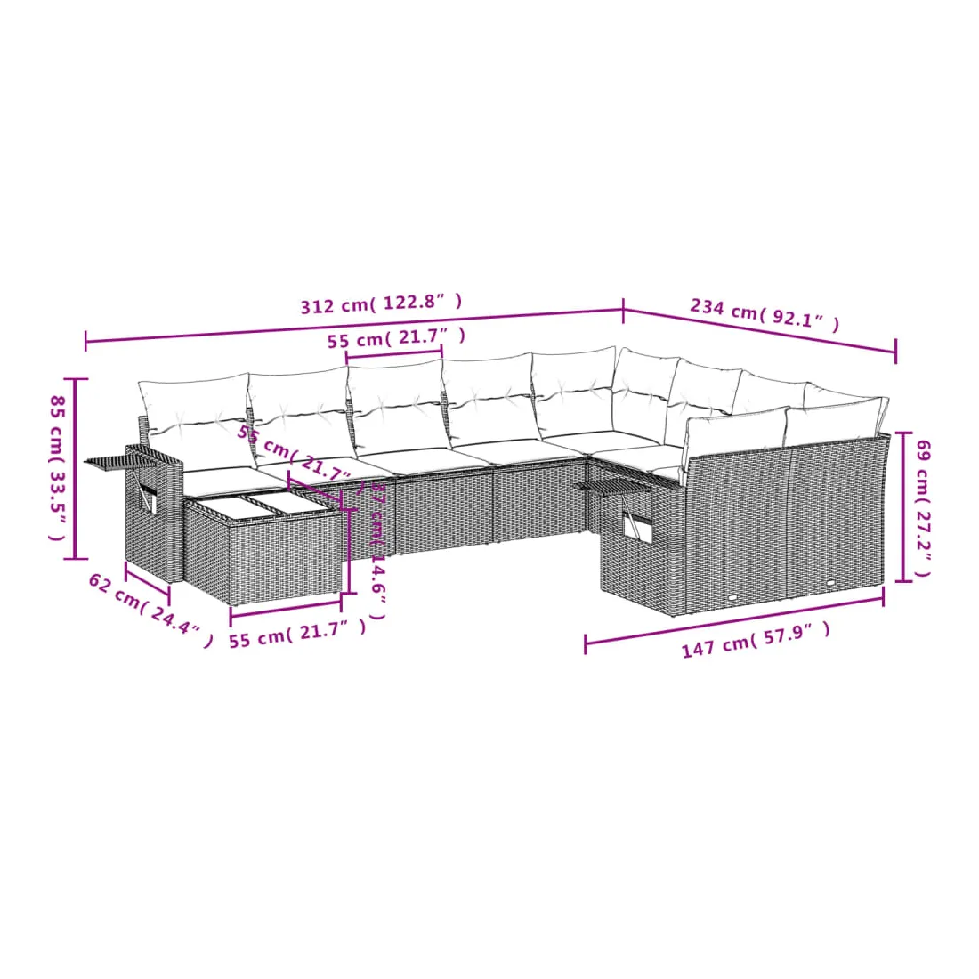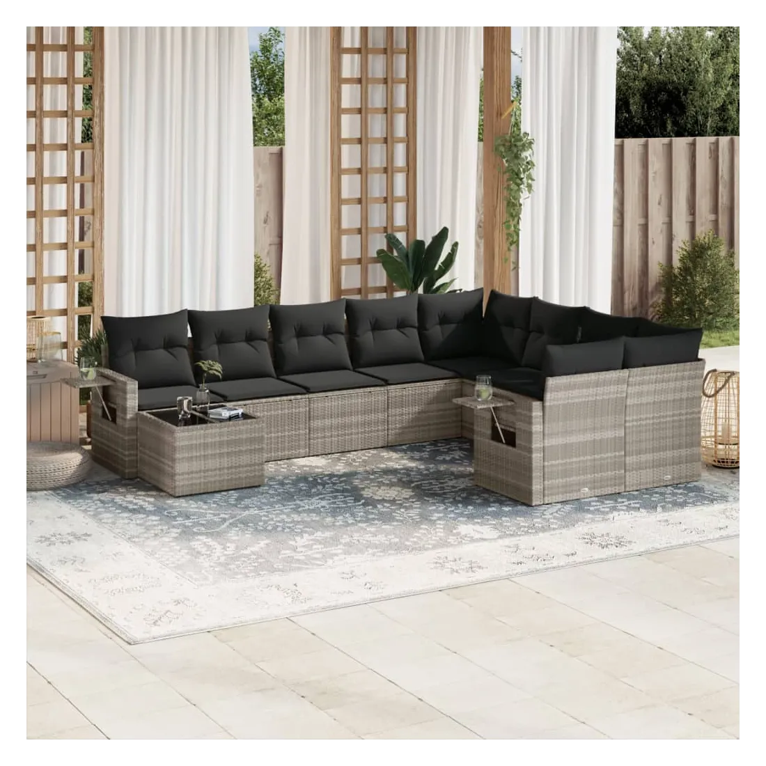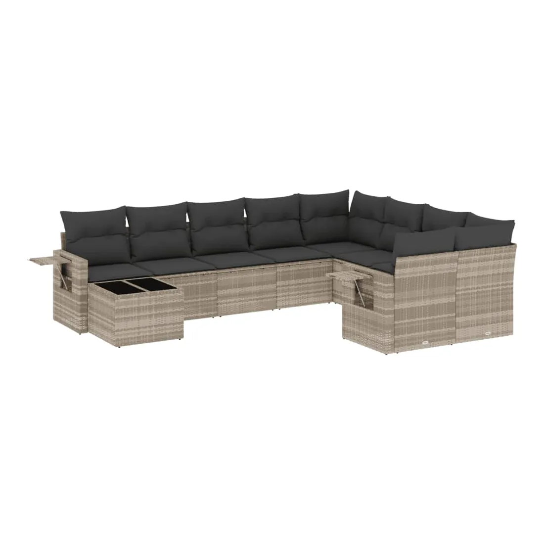 Salon de jardin avec coussins 10 pcs gris clair résine tressée