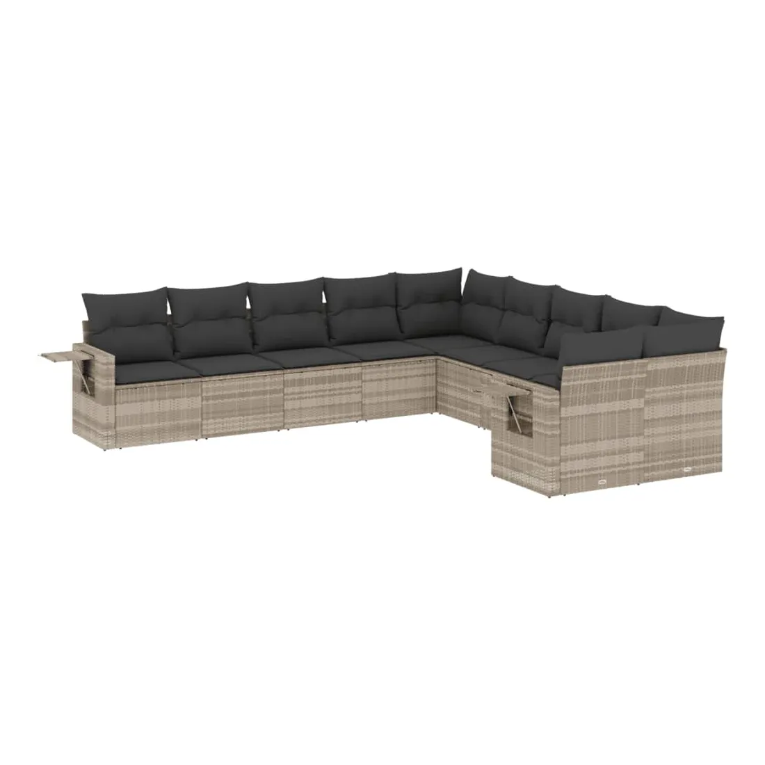 Salon de jardin avec coussins 10 pcs gris clair résine tressée