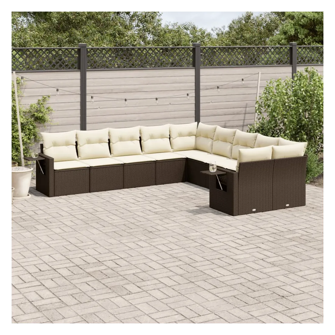 Salon de jardin 10 pcs avec coussins marron résine tressée