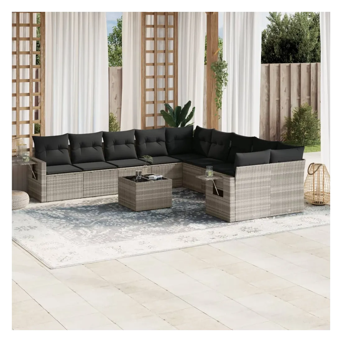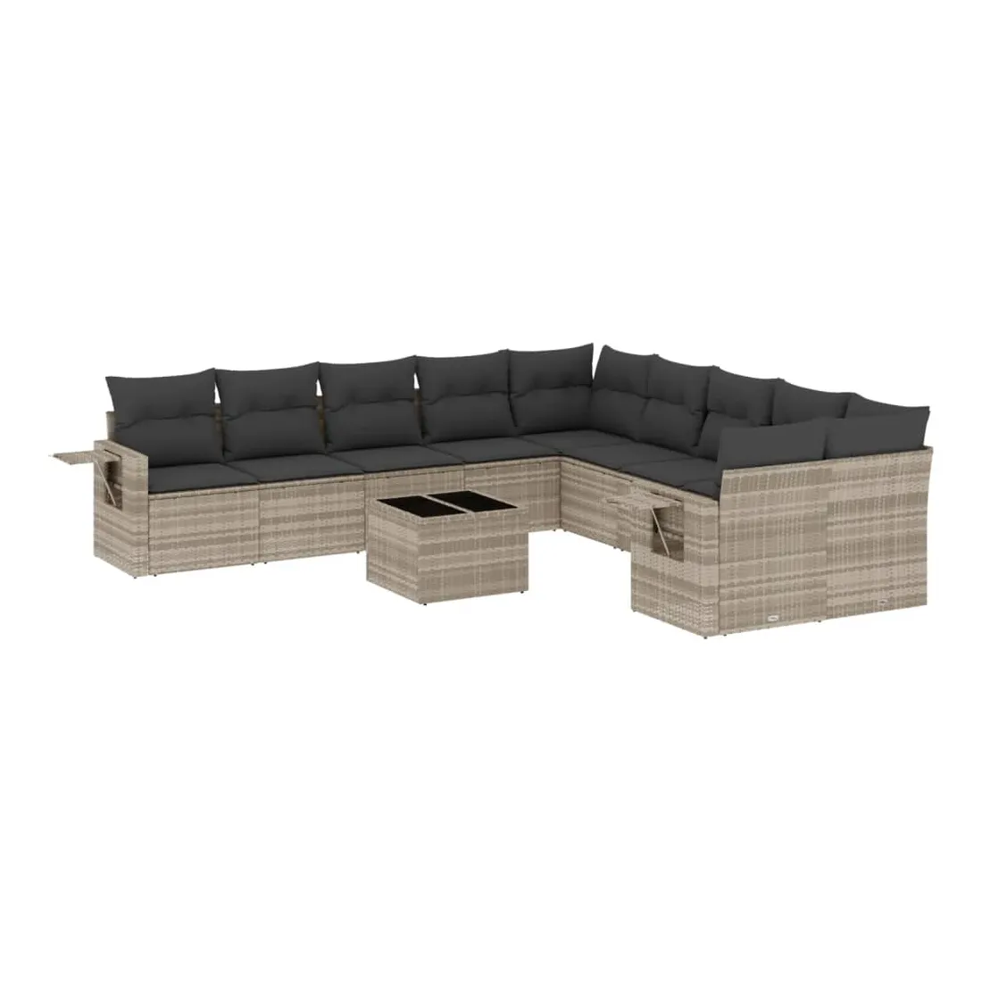 Salon de jardin 11 pcs avec coussins gris clair résine tressée