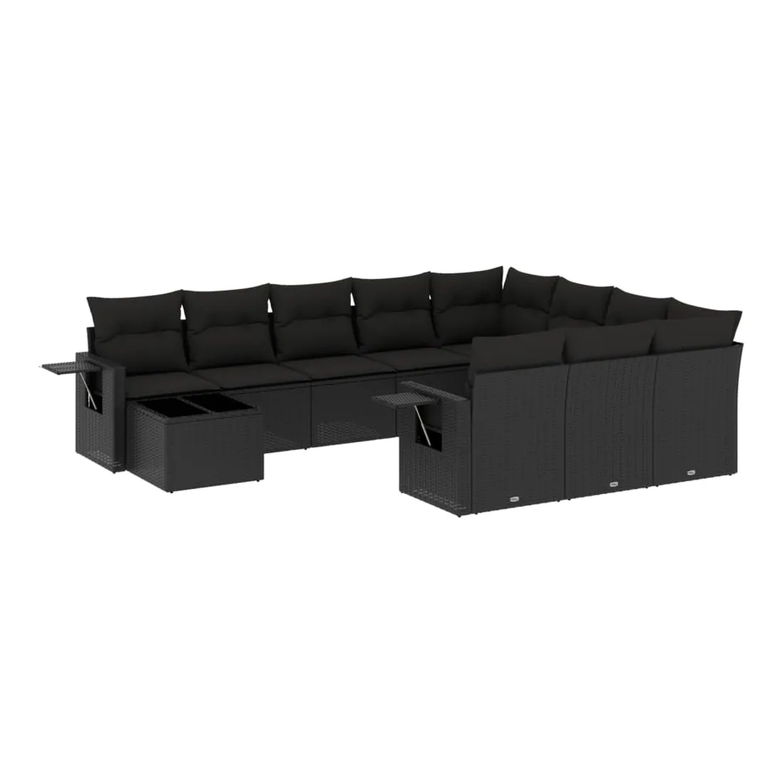 Salon de jardin 11 pcs avec coussins noir résine tressée