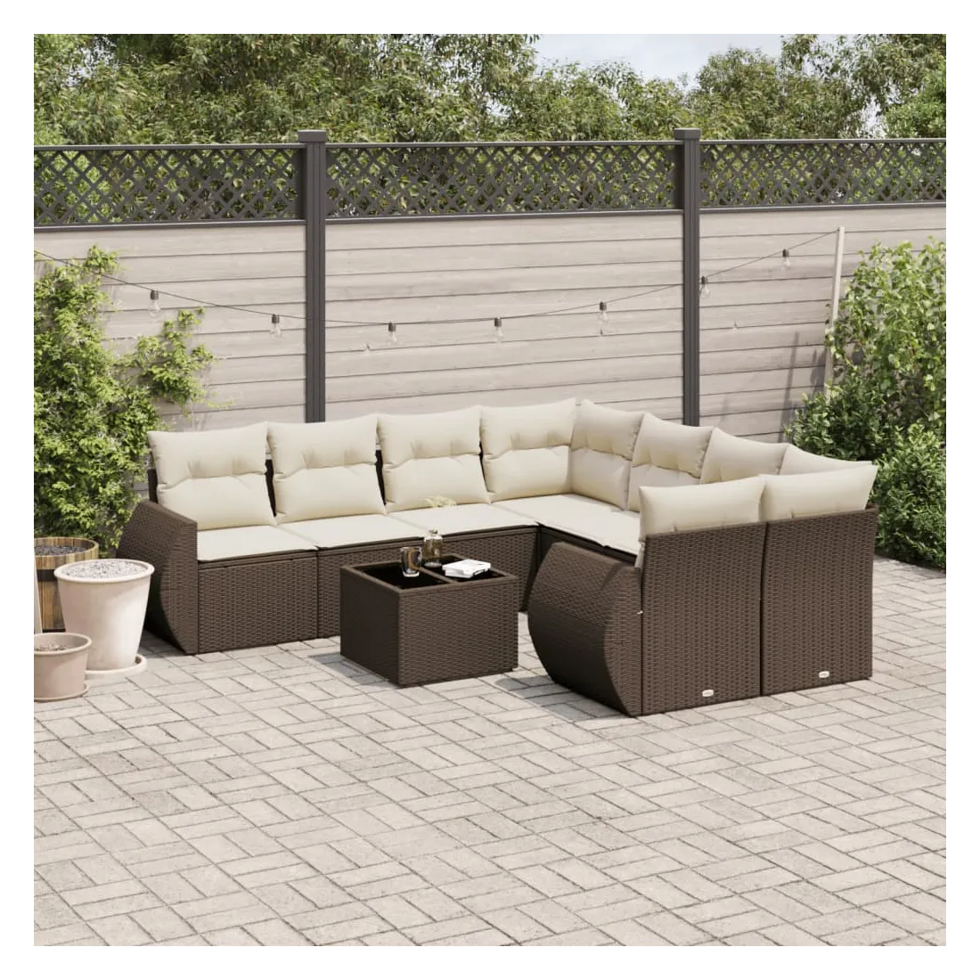 Cet ensemble de canapés de jardin est le complément parfait de votre arrière-cour, terrasse ou patio, offrant un espace confortable et accueillant pour discuter avec la famille et les amis ou simplement se détendre et profiter de l'extérieur. Matériau durable : la résine tressée, également connue sous le nom de poly rotin, est un matériau synthétique solide et nécessitant peu d'entretien qui ressemble au rotin naturel. Il est léger, facile à nettoyer et couramment utilisé pour les meubles d'extérieur en raison de sa durabilité et de ses propriétés de résistance aux intempéries.Fonction de rangement avec sac résistant à l'eau : chaque siège de jardin dispose d'un espace de rangement sous l'assise, complété par un sac résistant à l'eau pour ranger les coussins, les jouets et d'autres objets. Les sacs intérieurs sont dotés d'un couvercle et peuvent être solidement fixés aux sièges à l'aide de bandes auto-agrippantes pour plus de stabilité.Dessus en verre : le dessus de la table d'extérieur est fabriqué en verre trempé solide et durable, ce qui le rend facile à nettoyer avec un chiffon humide et ajoute une touche d'élégance à votre espace extérieur.Housse amovible et lavable : ces coussins de siège sont dotés de housses amovibles pour un lavage et un entretien faciles.Conception modulaire : cet ensemble de meubles d'extérieur a une conception modulaire, ce qui le rend complètement flexible et facile à déplacer, afin que vous puissiez créer un agencement de meubles d'extérieur personnalisé. Bon à savoir :Pour que vos meubles d'extérieur restent beaux, nous vous recommandons de les protéger avec une housse imperméable.