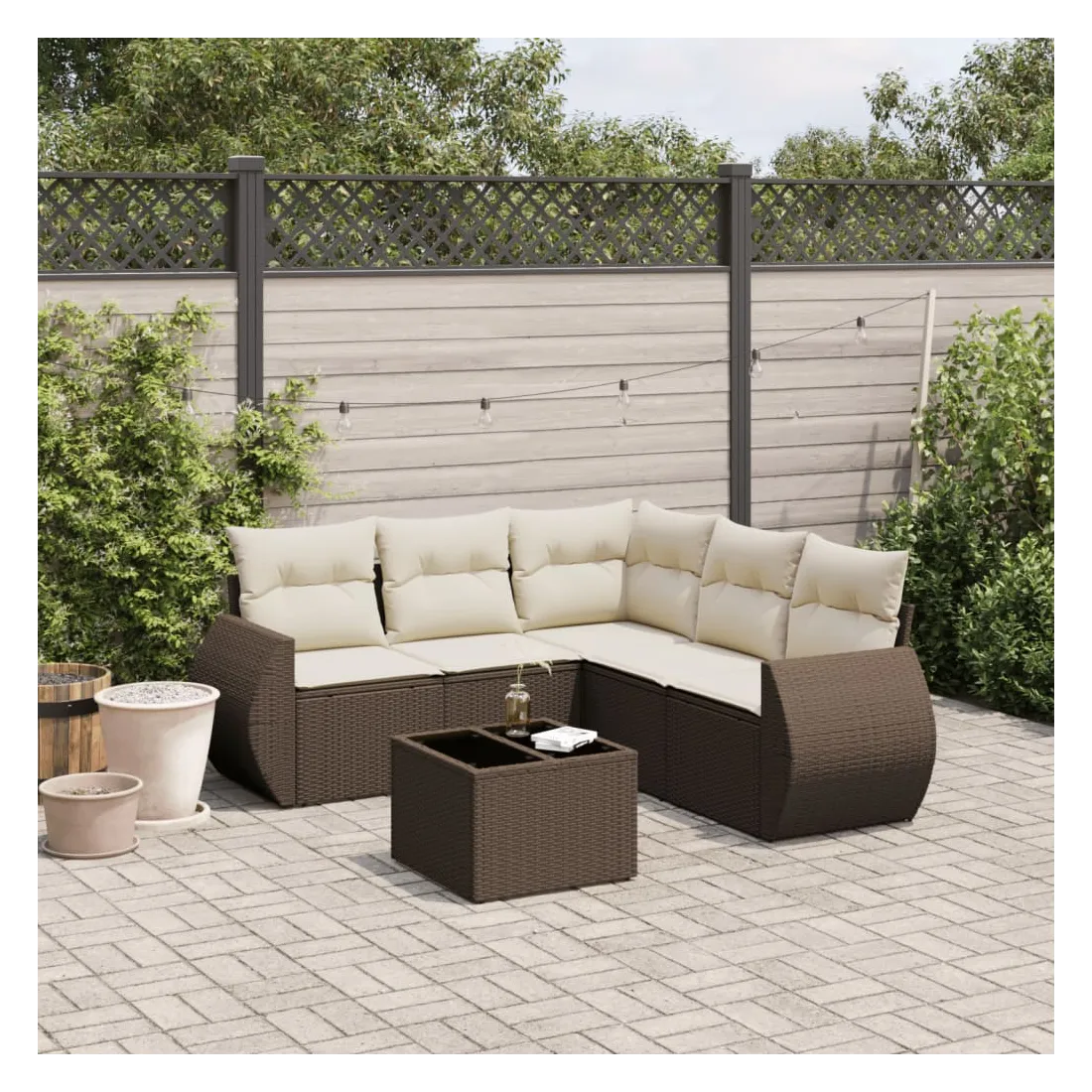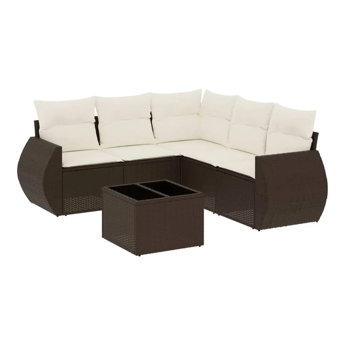 Salon de jardin avec coussins 6 pcs marron résine tressée