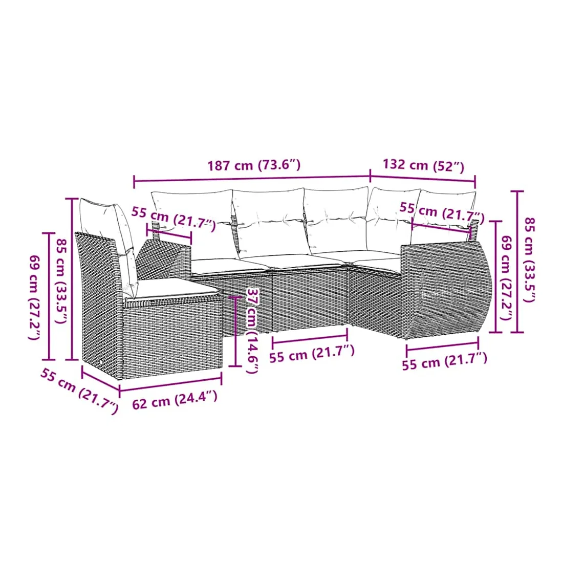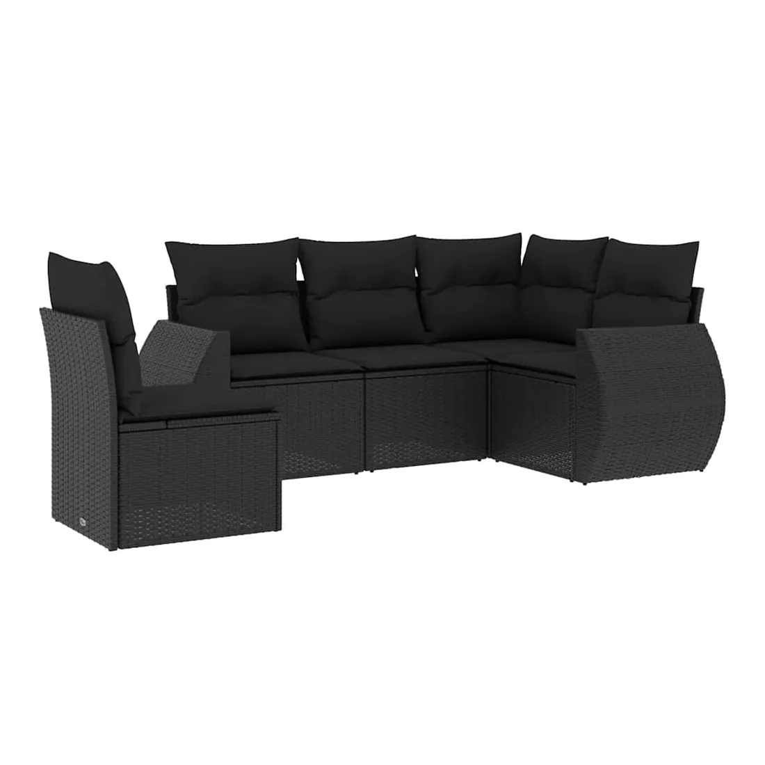 Salon de jardin 5 pcs avec coussins noir résine tressée